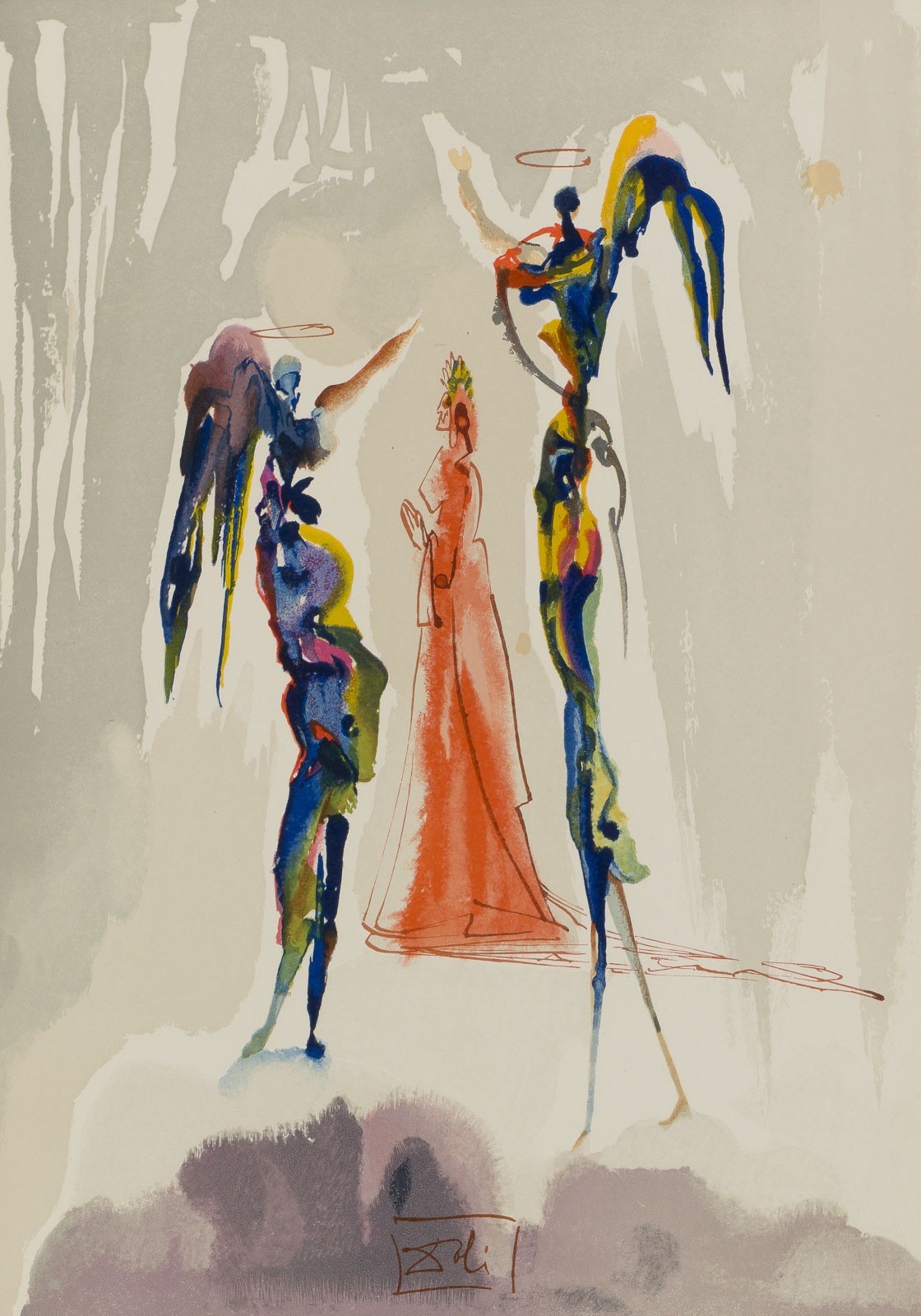 26 Farbxylographien auf Velin, in Originalbroschur und -kassette mit Leinenbezug und Rückentitel 'Salvador DALI'. Kassette 45 x 34,5 x 6 cm. BM jew. 33 x 26,2 cm. Jew. im Holzstock sign. 'Dalí'. Das Konvolut beinhaltet die Blätter 3, 24, 59, 61-65, 67, 70-72, 77-80, 82-83, 91, 93-94,