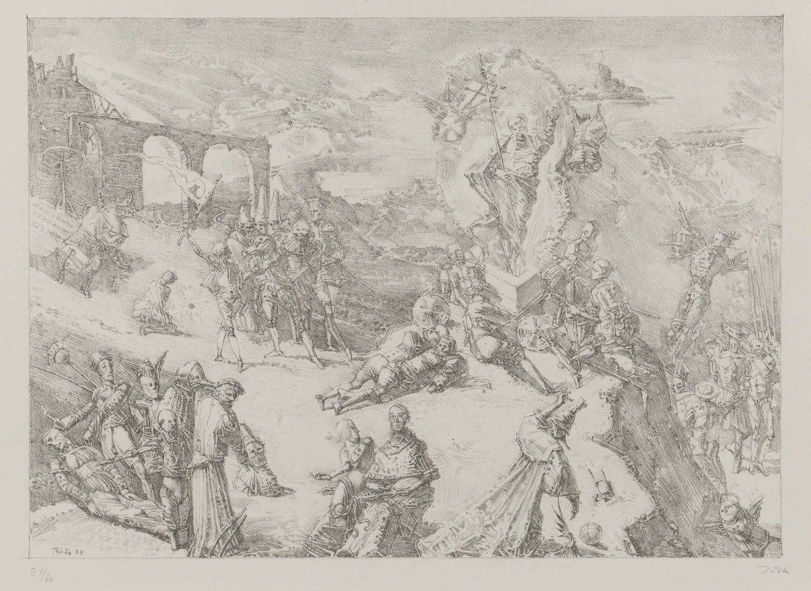 Lithografie auf Bütten. BM 39,3 x 50,2 cm. DM 25,6 x 35,7 cm. Unten links im Druck sign. u. dat. 'Tübke 85' sowie unterhalb der Darstellung rechts mit Bleistift handsign. 'Tübke' und links mit Ex.-Nr. '57/60'. Verso: Von fremder Hand mit Bleistift bez. und mit Resten alter Montage. Min. gebräunt. Ungerahmt.