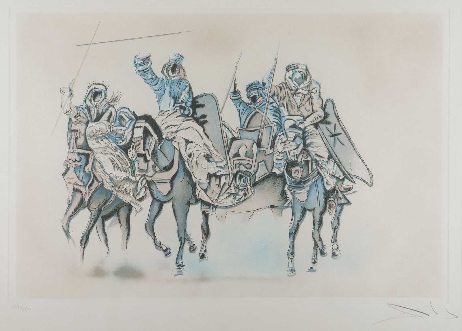 Aquatintaradierung auf Velin. R 65 x 82 cm. SM 45,7 x 62,7 cm. DM 39,5 x 58,7 cm. Unten rechts mit Bleistift sign. 'Dalí' sowie unten links mit Ex.-Nr. '118/300'. Min. gebräunt. Im Passepartout und hinter Glas gerahmt (ungeöffnet).