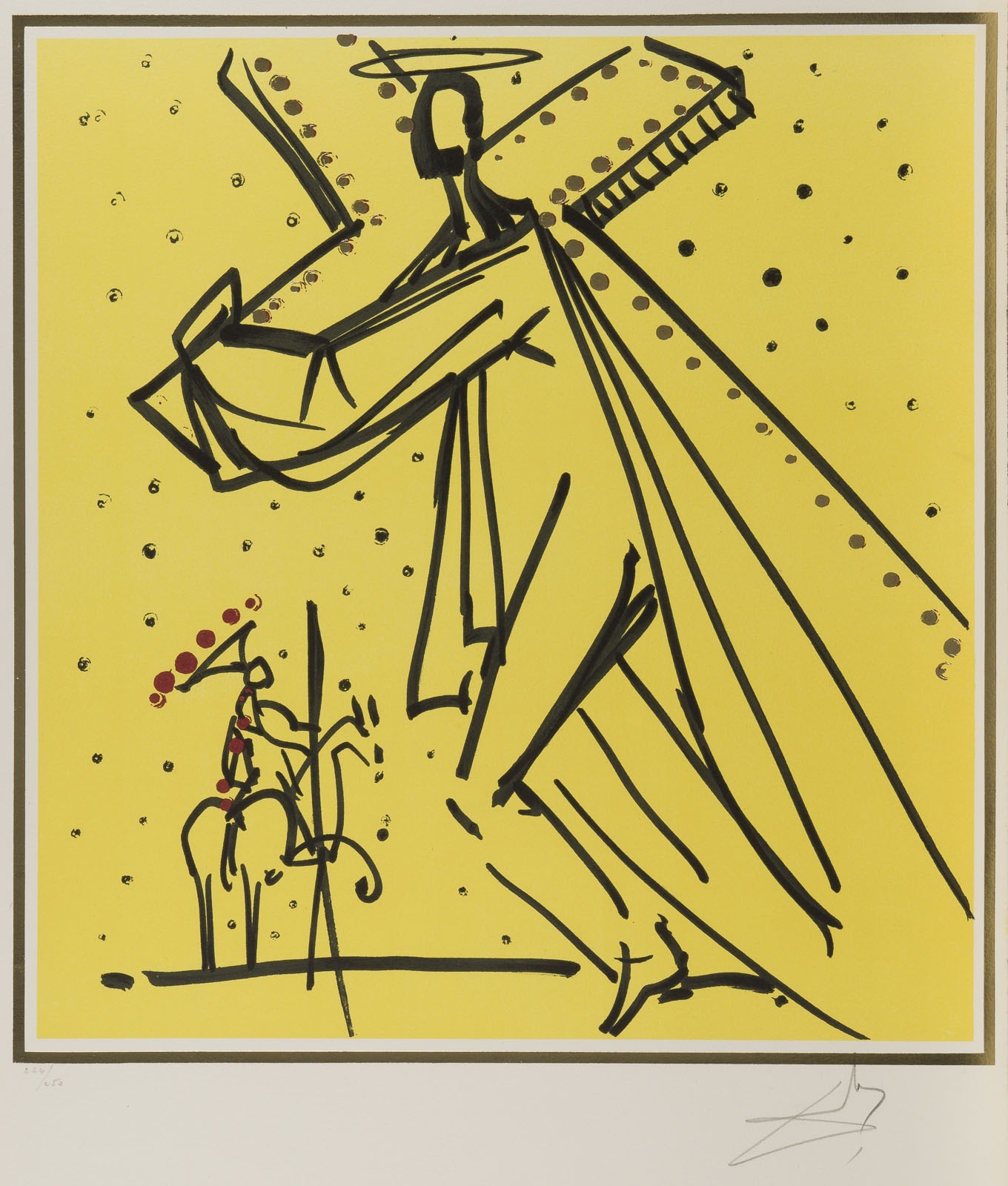 Farblithografie mit Goldprägung auf Arches, mit Wasserzeichen. BM 64,5 x 47,7 cm. DM 49,3 x 46 cm. Unten rechts mit Bleistift sign. 'Dalí' sowie unten links num. '224/250'. An den Rändern part. gebräunt. Ungerahmt.