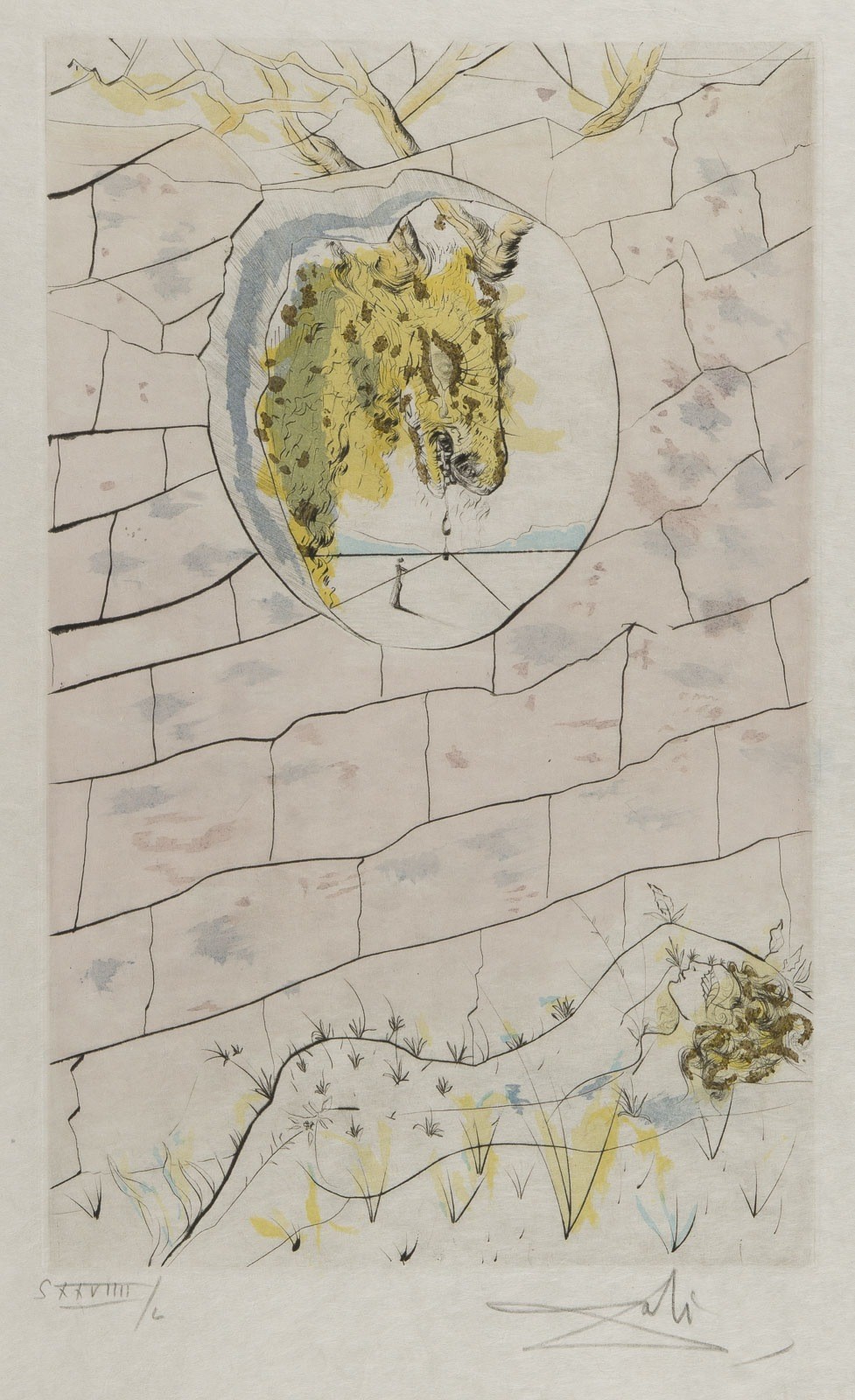 Farbradierung mit Pochoir und Goldauflage auf Japan, mit Trockenstempel Leon Amiel. BM 64 x 50 cm. DM 40 x 25 cm. Unten rechts mit Bleistift sign. sowie unten links mit Ex.-Nr. 'S XXVIIII/L'. Leichte Knickspuren sowie Griffspuren im Randbereich. Ungerahmt.
