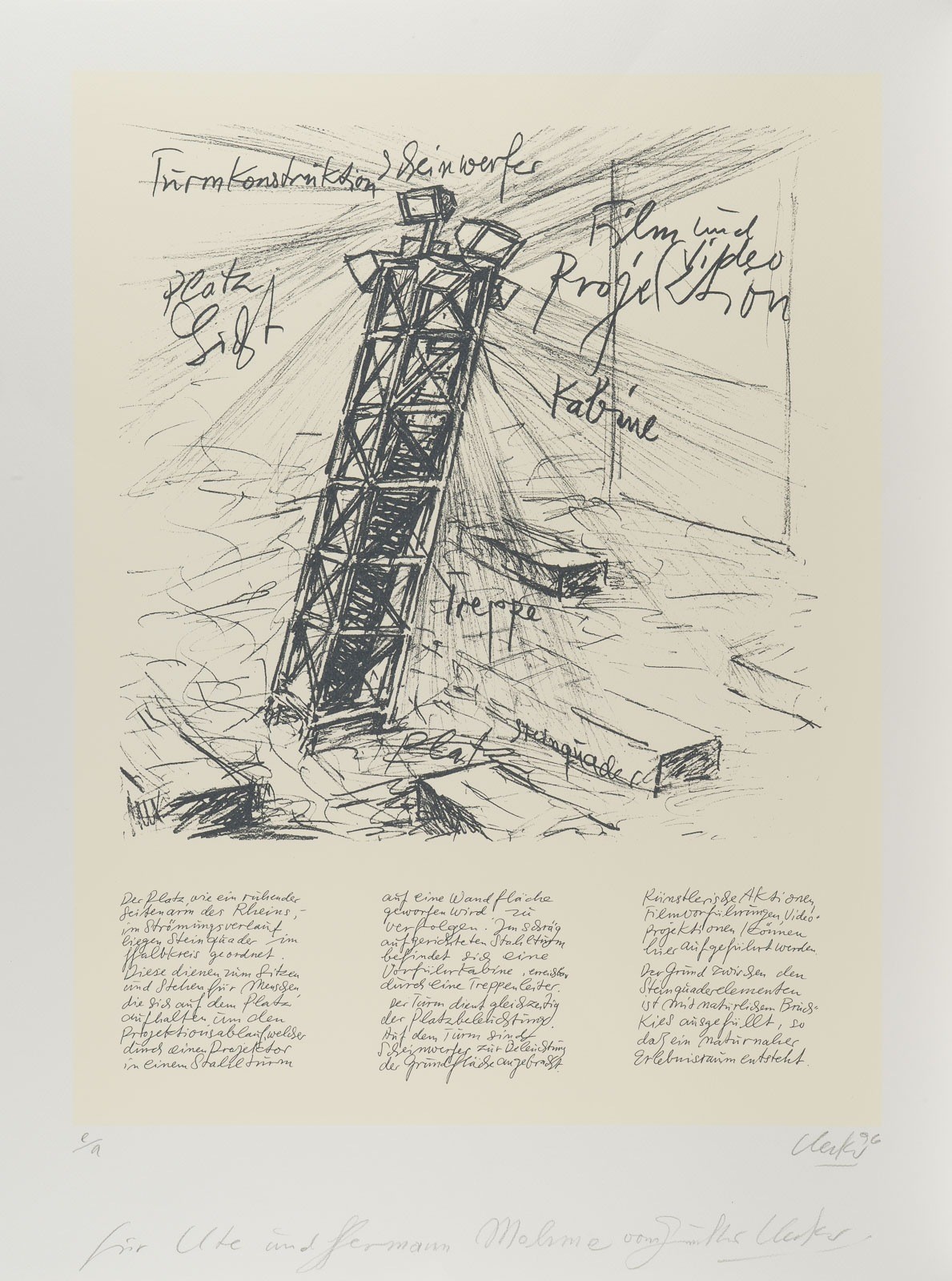 Farblithografie auf Bütten. BM 80 x 60 cm. DM 65 x 50 cm. Unten rechts mit Bleistift sign. u. dat. 'Uecker (19)96' sowie unten links bez. 'e/a'. Zusätzlich mit persönlicher Widmung am unteren Rand. Verso: Von fremder Hand mit Bleistift bez. Part. Griffspuren. Ungerahmt.