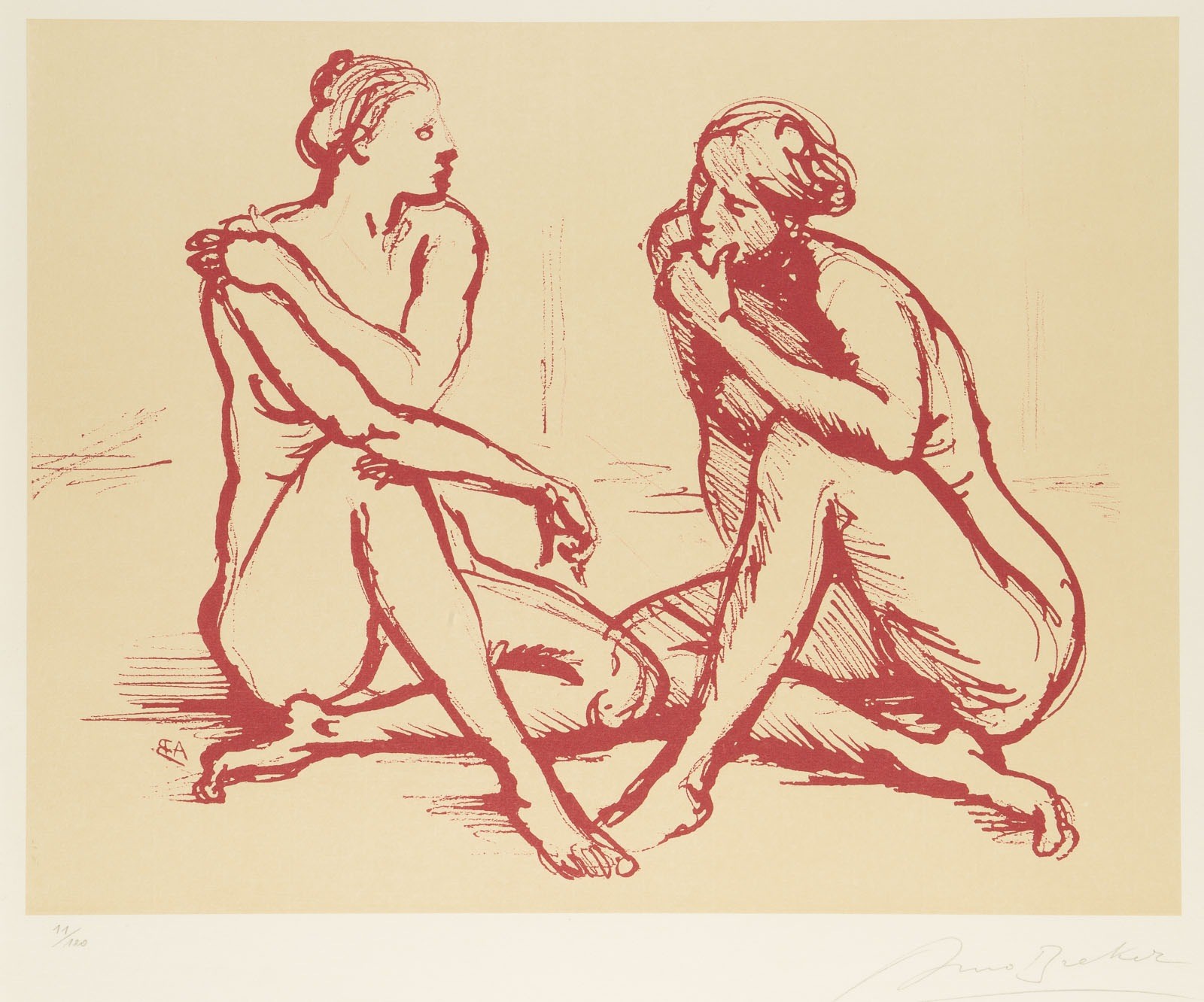 Sechs (Farb-)Lithografien auf Japan bzw. Bütten, meist mit Trockenstempel 'GALERIE MARCO EDITION BONN PARIS', teils mit Wasserzeichen. BM 48,8 x 37,3 - 73 x 54 cm. Jew. unten rechts mit Bleistift sign. 'Arno Breker' sowie meist mit Ex.-Nr., zwei Blätter zusätzlich datiert. Part. leicht gebräunt sowie min. Griffspuren, ein Blatt zusätzlich min. stockfleckig. Ungerahmt.