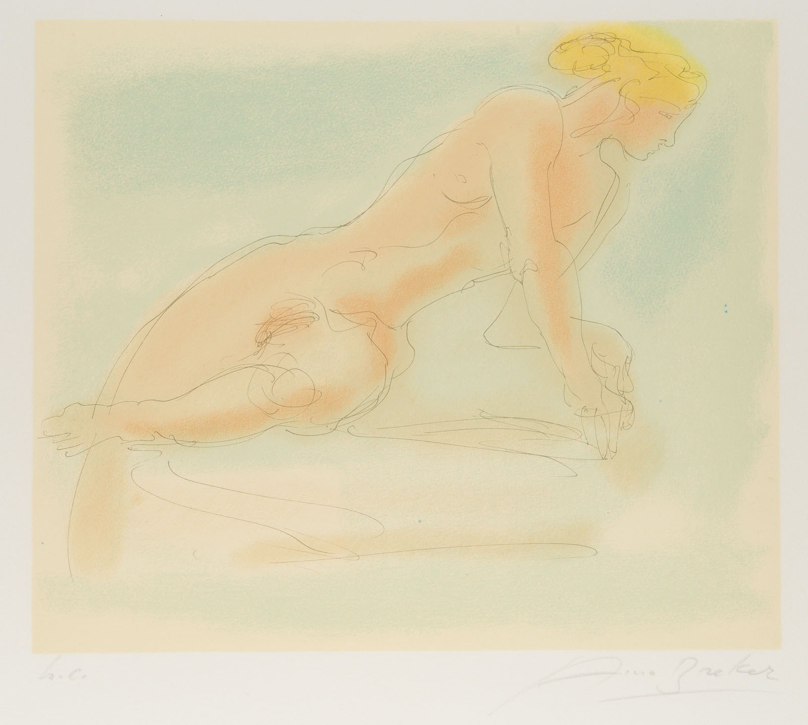 Sechs Farblithografien auf Japan/Velin/Bütten, teils mit Trockenstempel 'GALERIE MARCO EDITION BONN PARIS', teils mit Wasserzeichen. BM 32 x 55,5 - 50 x 65 cm. Fünf Blätter mit Bleistift unten rechts sign. 'Arno Breker' sowie meist mit Ex.-Nr., ein Blatt zusätzlich datiert. Part. leicht gebräunt, ein Blatt leicht fleckig. Ungerahmt.