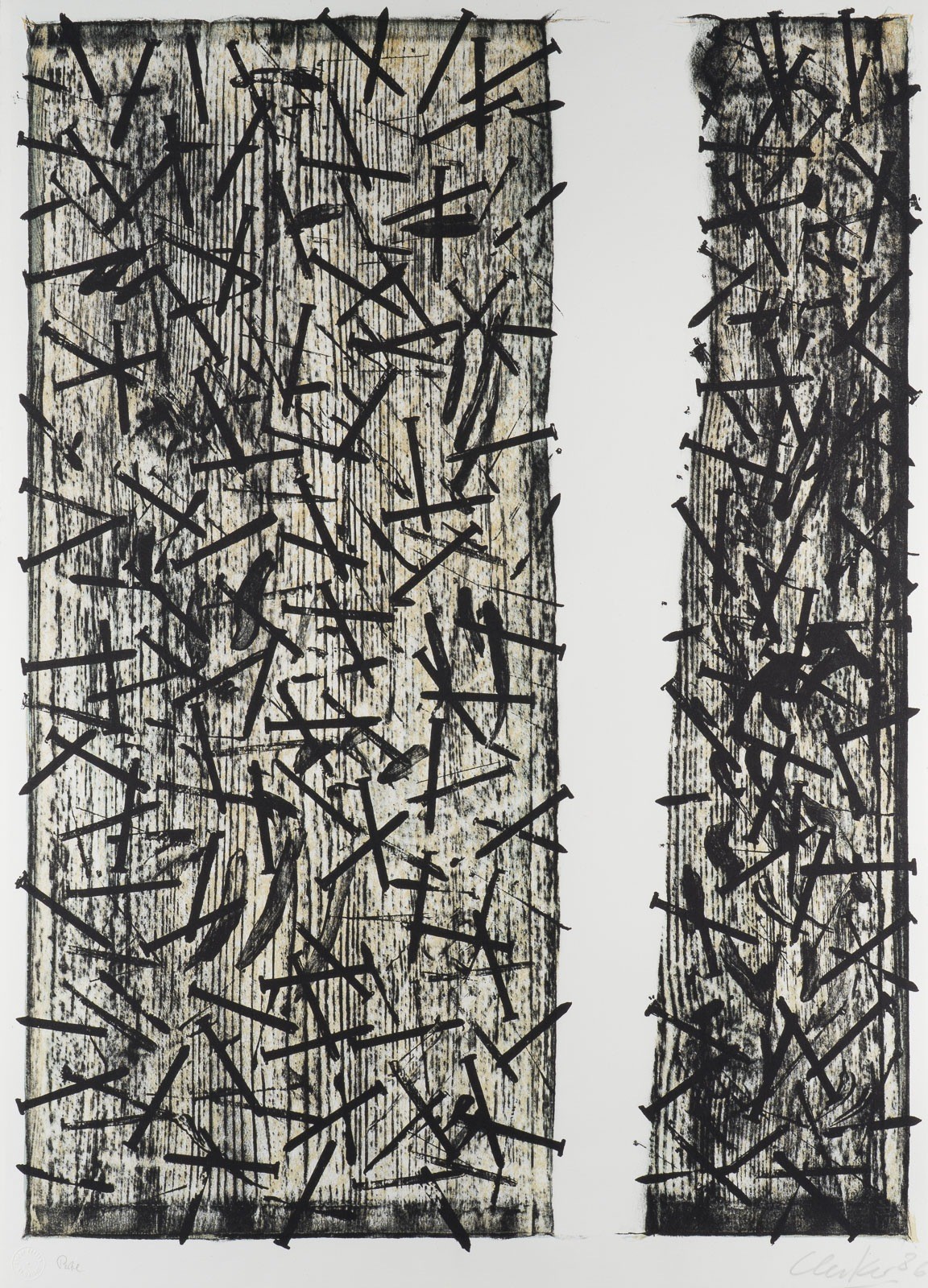 Farblithografie auf Bütten, mit Trockenstempel 'Erker Presse, St. Gallen'. R 104,7 x 75 cm. BM 79,8 x 57,6 cm. Unten rechts mit Bleistift sign. u. dat. 'Uecker (19)86' sowie unten links bez. 'Probe'. Auf weißem Hintergrund montiert und hinter Glas gerahmt (ungeöffnet).