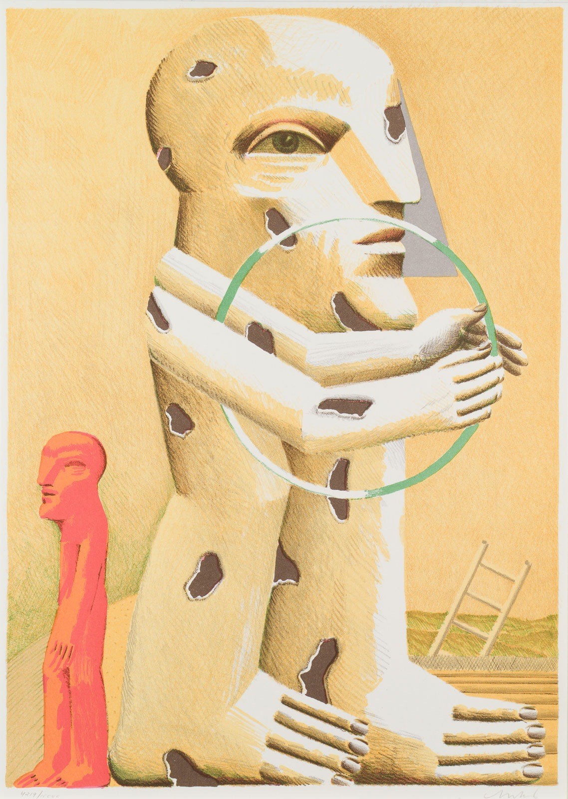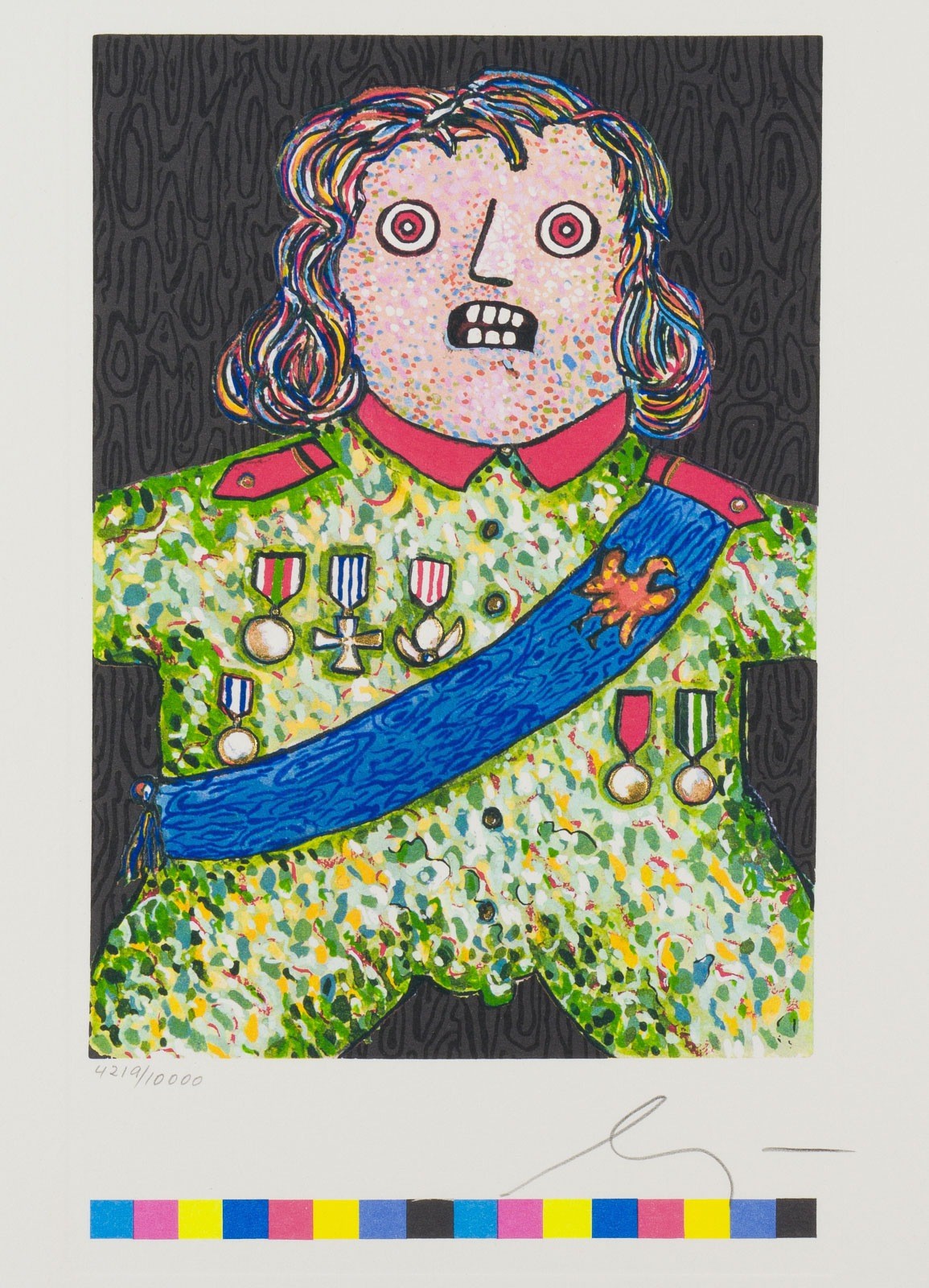 5/7 Lithografien, in Original-Leinenmappe und Karton. Mappe 43,4 x 30,6 cm. BM 42 x 30 cm. Jew. mit Bleistift signiert und num. '4219/10000'. Darunter: Valerio Adami, Horst Antes, Enrico Baj, Bruno Bruni, Simon Dittrich. Karton leicht besch.