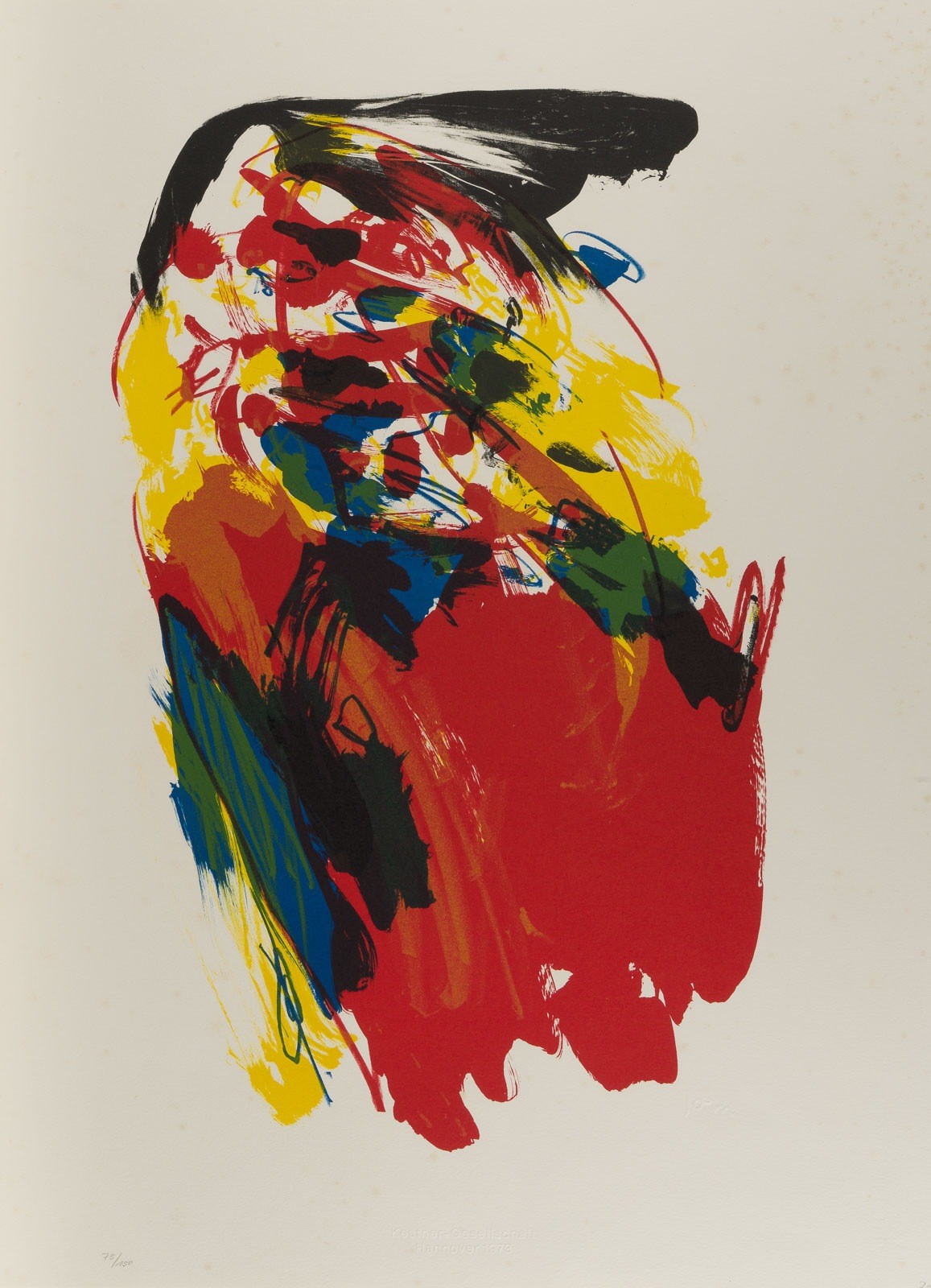 Farblithografie auf Arches, mit Wasserzeichen, Ed. Kestner-Gesellschaft, Hannover. BM 65,8 x 48 cm. DM 53 x 34 cm. Unterhalb der Darstellung rechts mit Signaturtrockenstempel, unten mittig mit Editionstrockenstempel (dort datiert) sowie unten links mit Bleistift mit Ex.-Nr. '75/150' und unten rechts bez. Verso: Rückseitig mit Bleistift von fremder Hand bez. Stockfleckig. Ungerahmt.