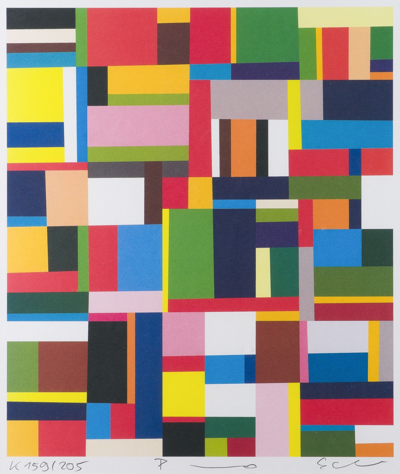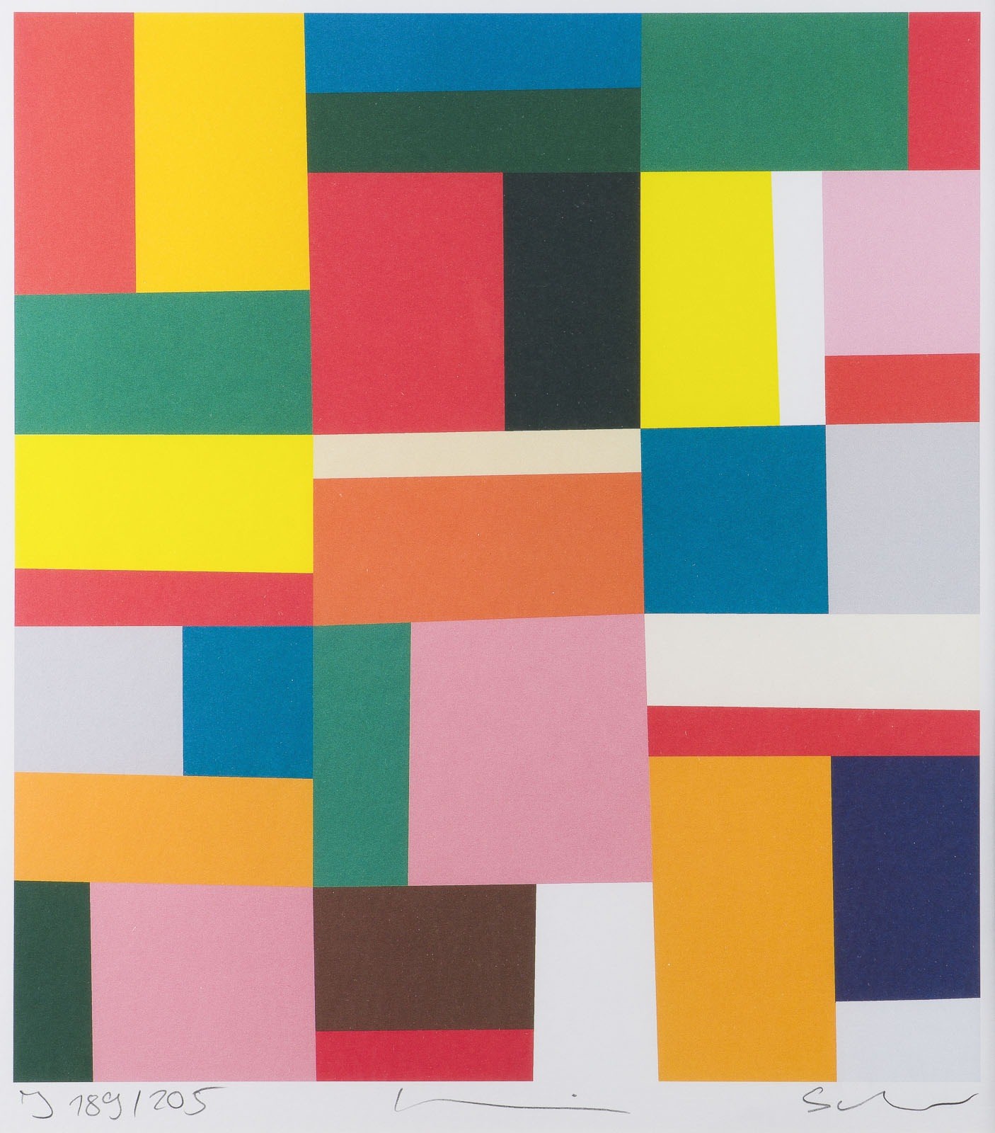 Farbserigrafie auf leichtem Karton. R jew. 56 x 56 cm. SM 41 x 35,5 cm bzw. 41 x 37 cm. DM 38 x 32,5 cm bzw. 38 x 34,5 cm. Jew. unten rechts mit Bleistift sign., unten mittig unleserlich bez., unten links bez. und num. 'K 159/205', bzw. 'J 189/205'. Jew. im Passepartout und hinter Glas gerahmt (ungeöffnet).