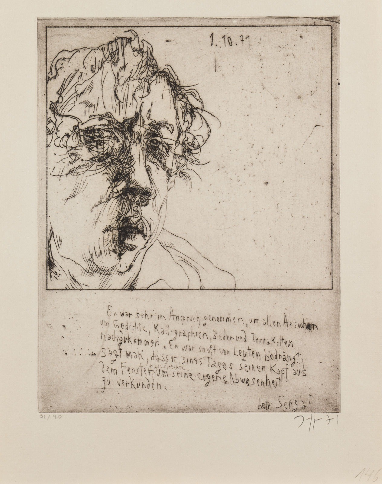 Aquatintaradierung auf Bütten. DM 24,6 x 18,9 cm, BM 32 x 25,5 cm. Unten rechts mit Bleistift signiert und dat., sowie unten links num. '31/90', unten links mit Bleistift bez. Verso: Rückseitig mit Bleistift bez. Min. gebräunt. Ungerahmt.