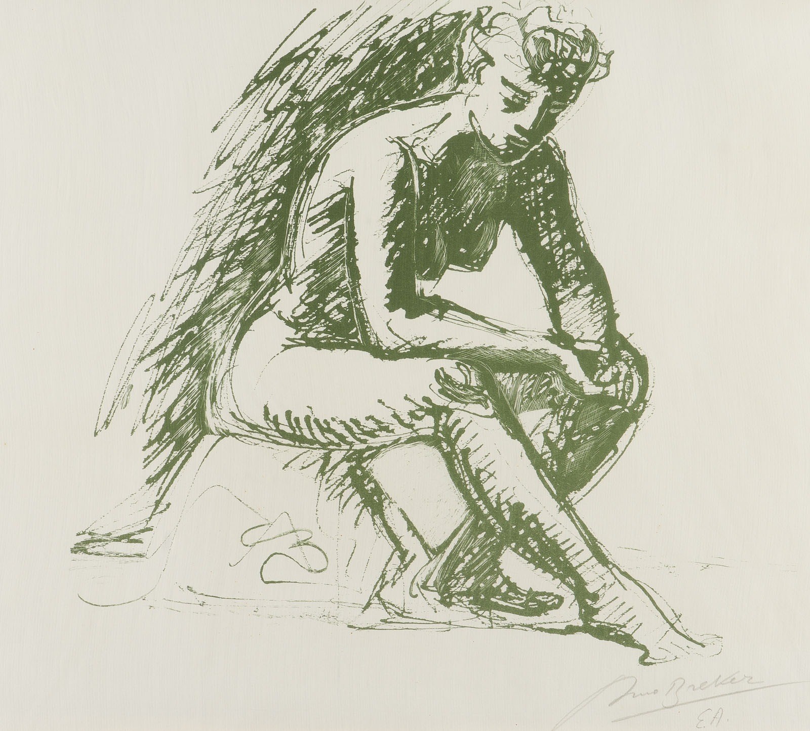 Farblithografie auf dünnem Bütten. R 56,6 x 66,6 cm. SM 35,7 x 45,7 cm. Unten rechts mit Bleistift sign. 'Arno Breker' sowie bez. 'E.A.'; zusätzlich im Stein monogrammiert 'AB'. Im Passepartout und hinter Glas gerahmt (ungeöffnet).
