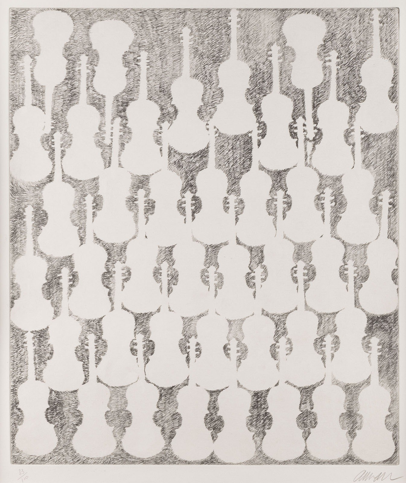Radierung auf BFK Rives, mit Trockenstempel Atelier Baviera Saint Paul De Vence. DM 44 x 37,5 cm, BM 65 x 50 cm (Passepartout 80 x. Unten rechts handsigniert sowie unten links nummeriert '33/100'. Minimalst stockfleckig, minimalst gebräunt. Im Passepartout montiert.