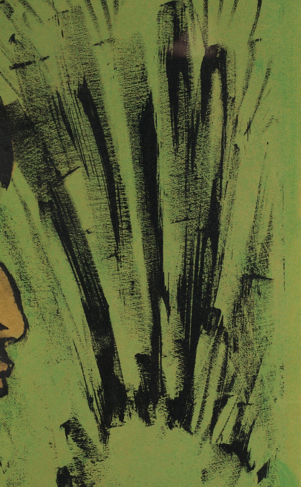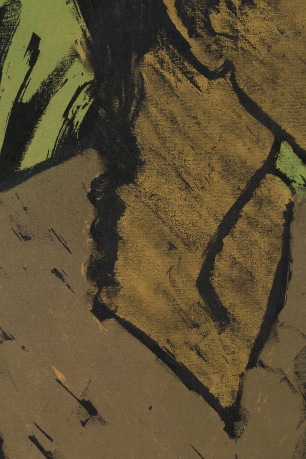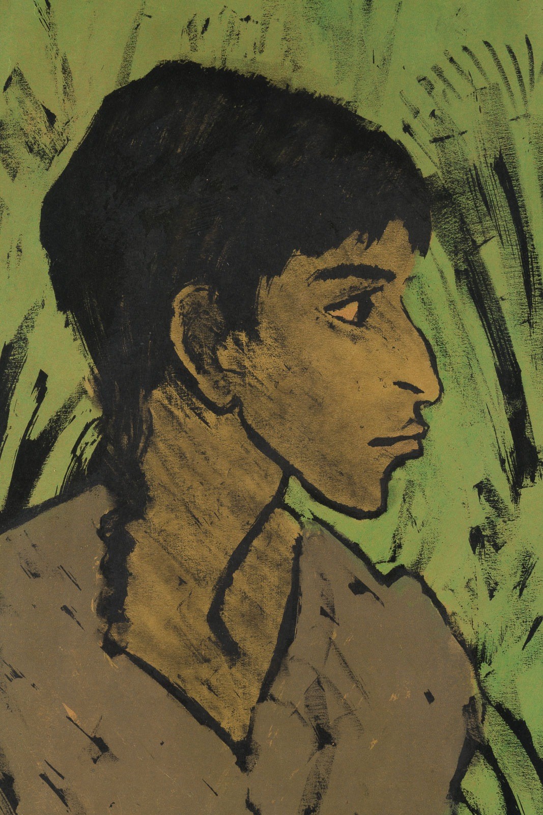 Farblithografie, part. grün koloriert auf gelbem Maschinenbütten. R 70,5 x 59,5 cm. BM 56,5 x 43,3 cm, DM 54,4 x 43,4 cm. Verso: Rückseitig mit dem Nachlass-Stempel 'OM Nachlass Prof. Otto Mueller Breslau", von Erich Heckel signiert. Einer von 60 Abzügen. Blatt 1 (von 9) der Mappe 'Zigeuner'; 9 Farbige Lithografien. Berlin, Galerie Neumann-Nierendorf, 1927.
