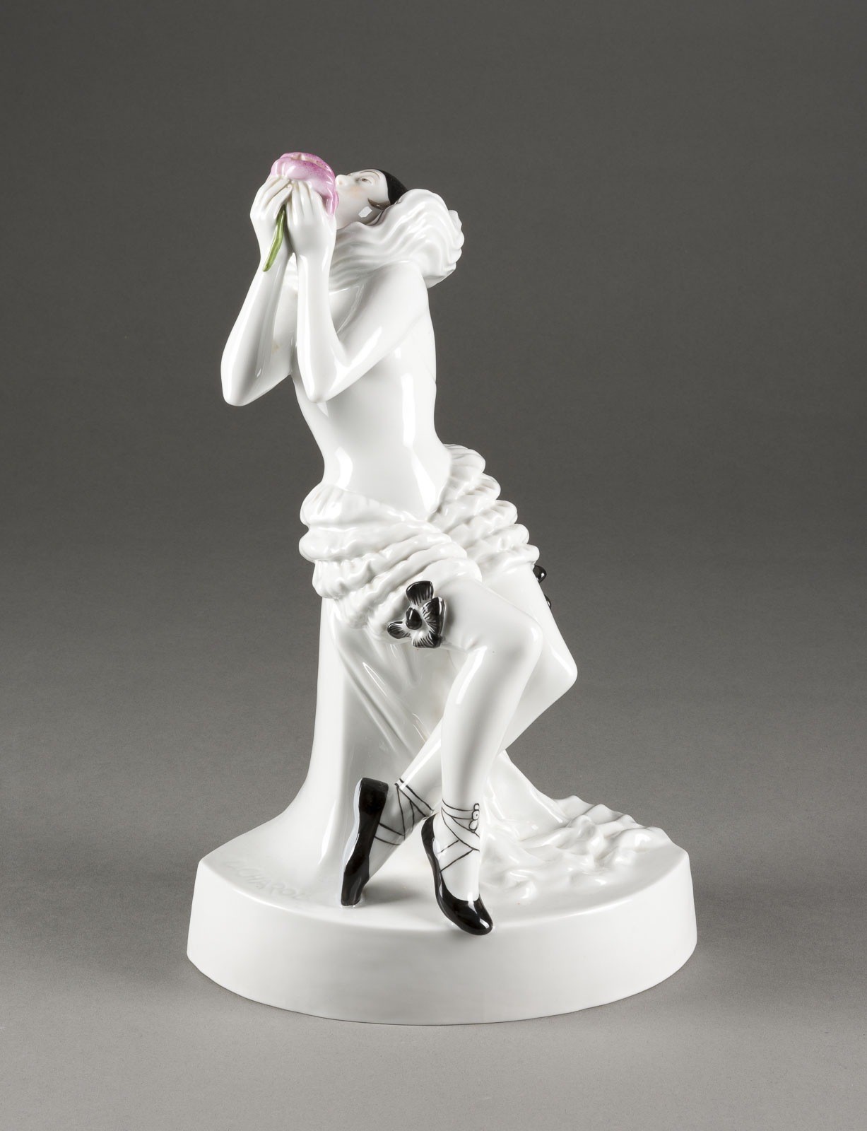 Weißporzellan, glasiert, dezente polychrome Malerei. H. 34,5 cm. Unterglasurblauer Manufakturstempel, bez. 'D. Charol 24'.