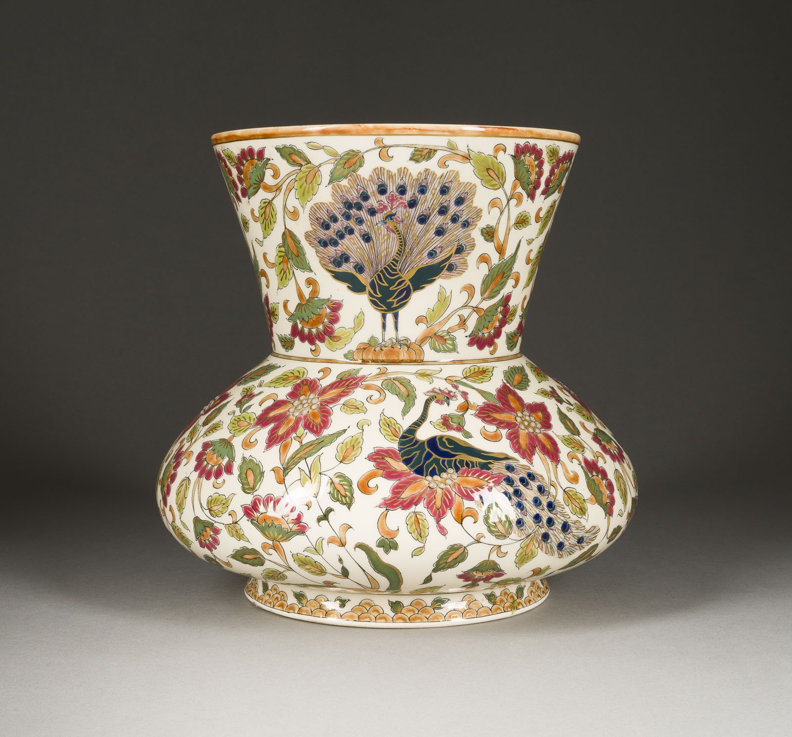 GROSSE VASE MIT PFAU UND FLORALER DEKOR