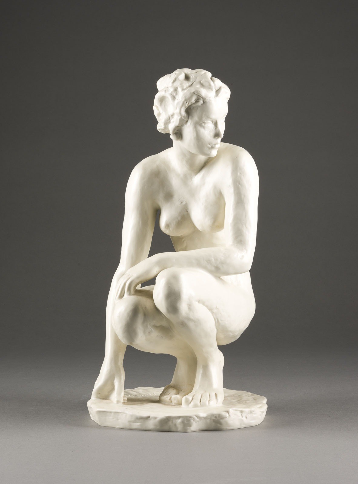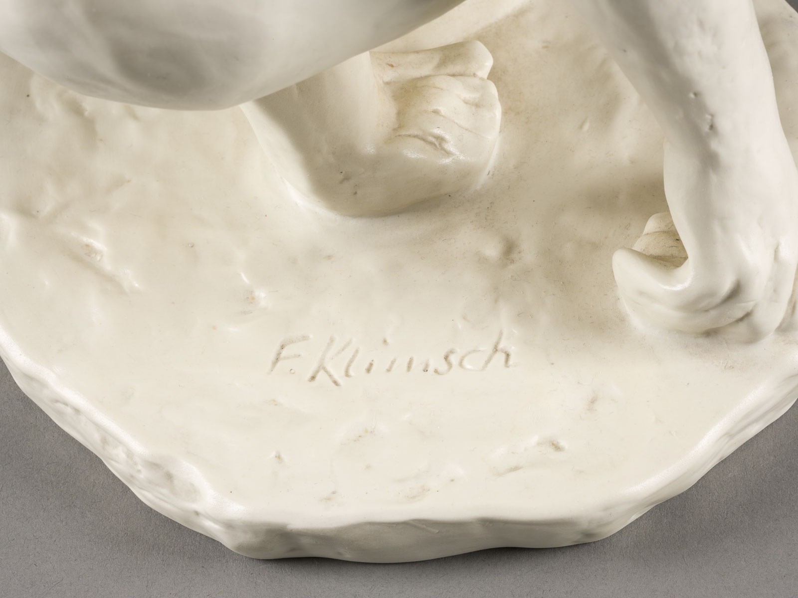 Biskuitporzellan. H. 42,5 cm. Auf dem Boden grüner Manufakturstempel, Pressnummer. Am Sockel bez. 'F. Klimsch'.
