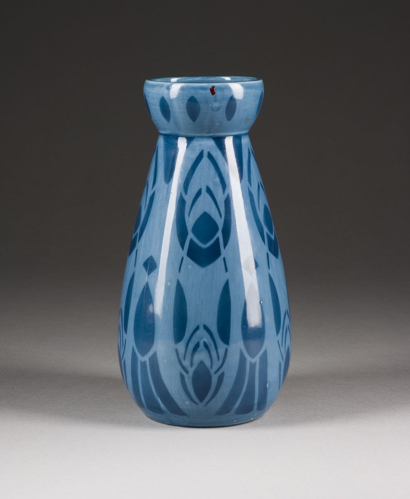 Keramik, heller Scherben, farbig glasiert. H. 25 cm. Im Boden gestempelte Werkstattmarke (undeutlich), Modellnr. '474'.