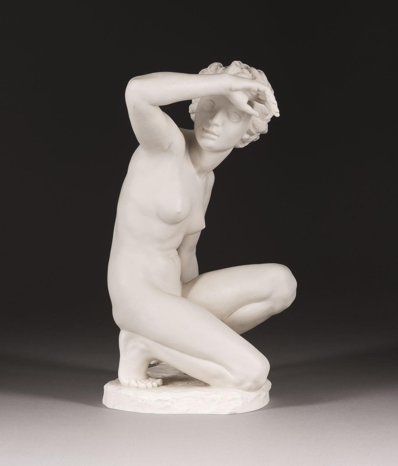 Biskuitporzellan. H. 40 cm. Grüne Manufakturmarke (undeutlich), bez. 'C. Werner'.
