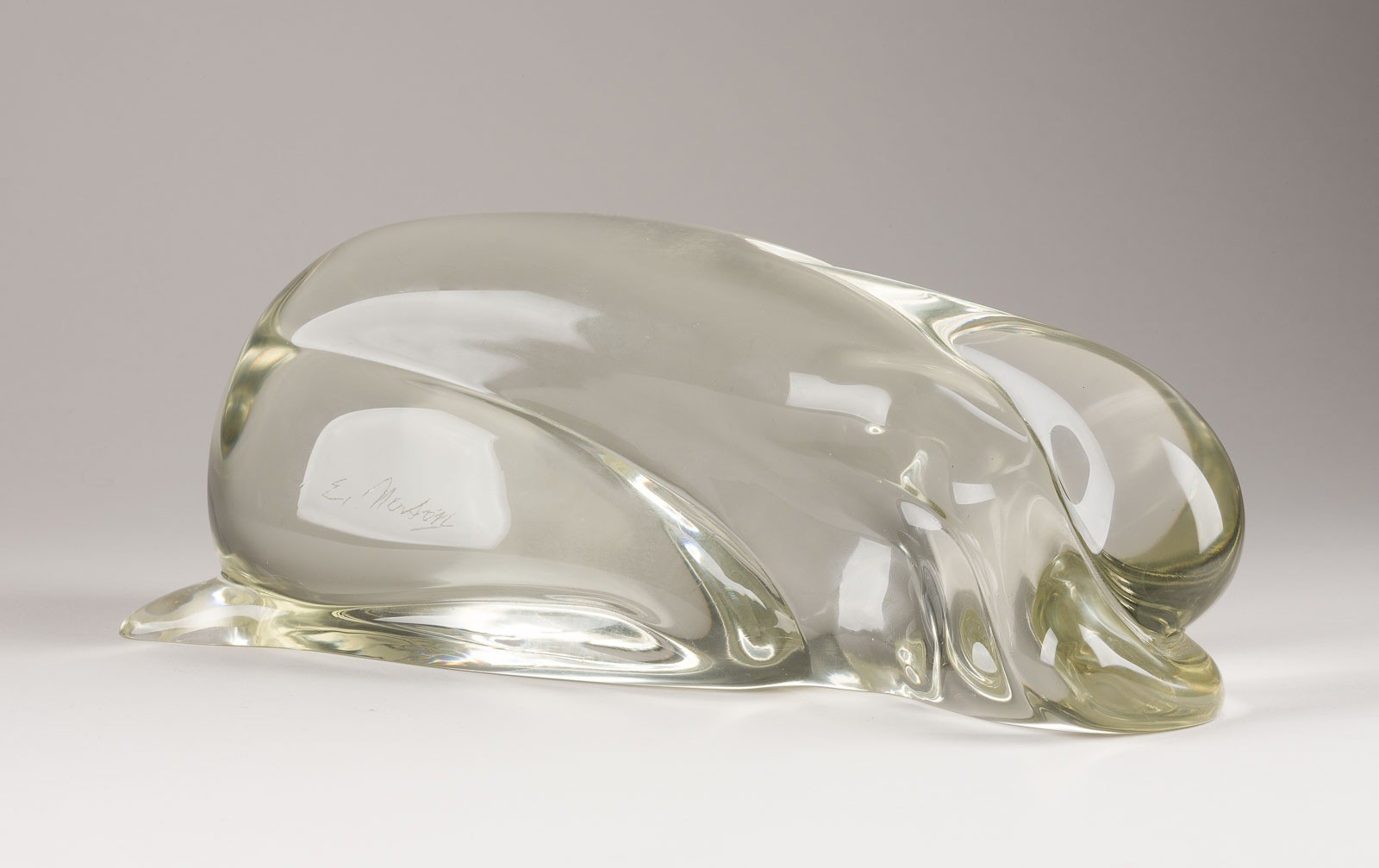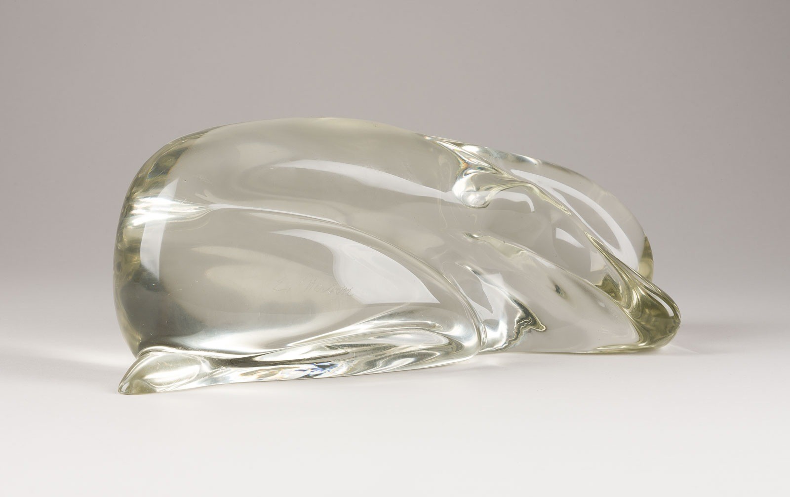 Massives, leicht gelbliches Glas, frei geformt. H. max. 10,5 cm, B. 28 cm, T. max. 9 cm. Bez. 'E.Nason' (geritzt).