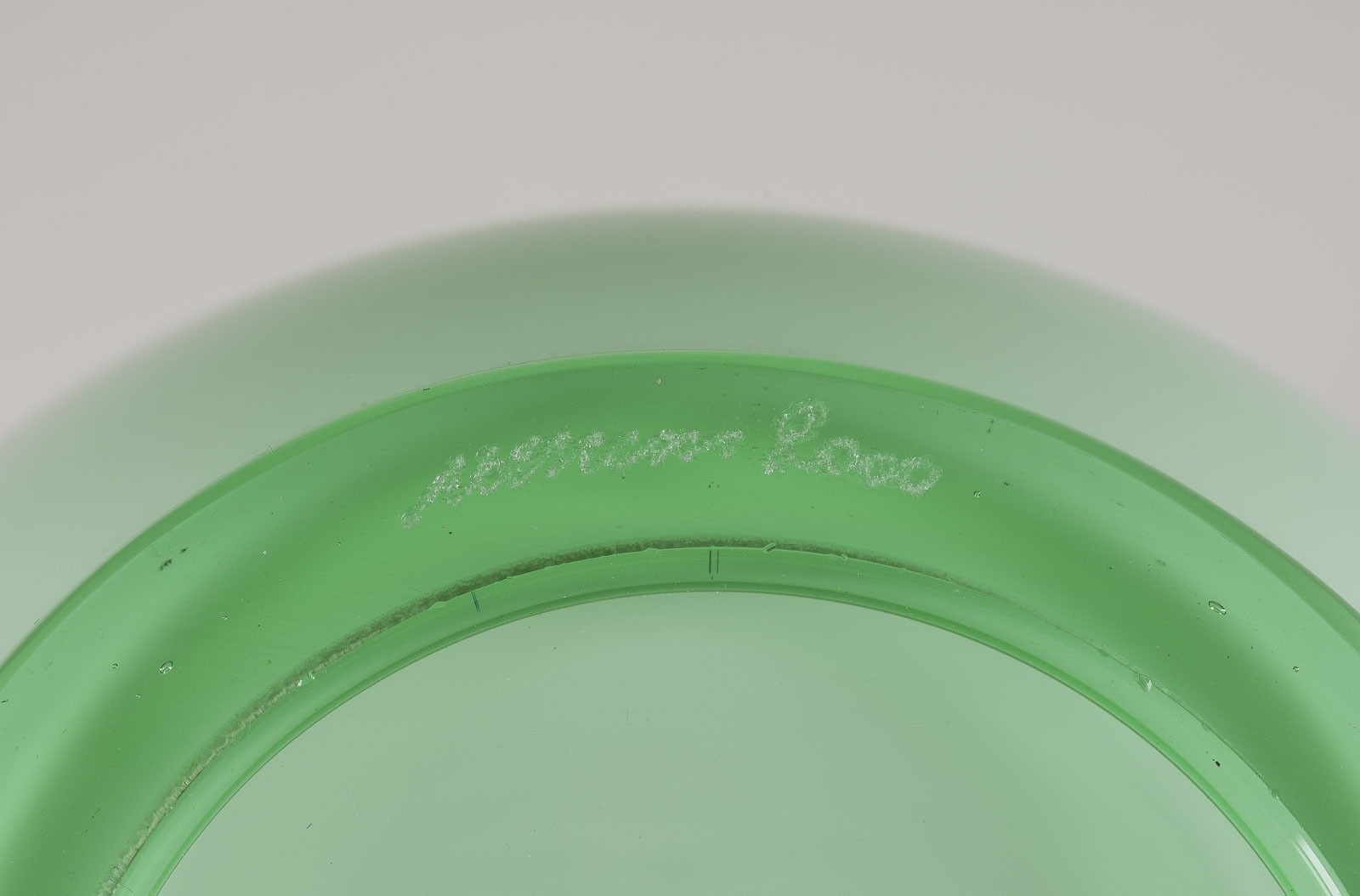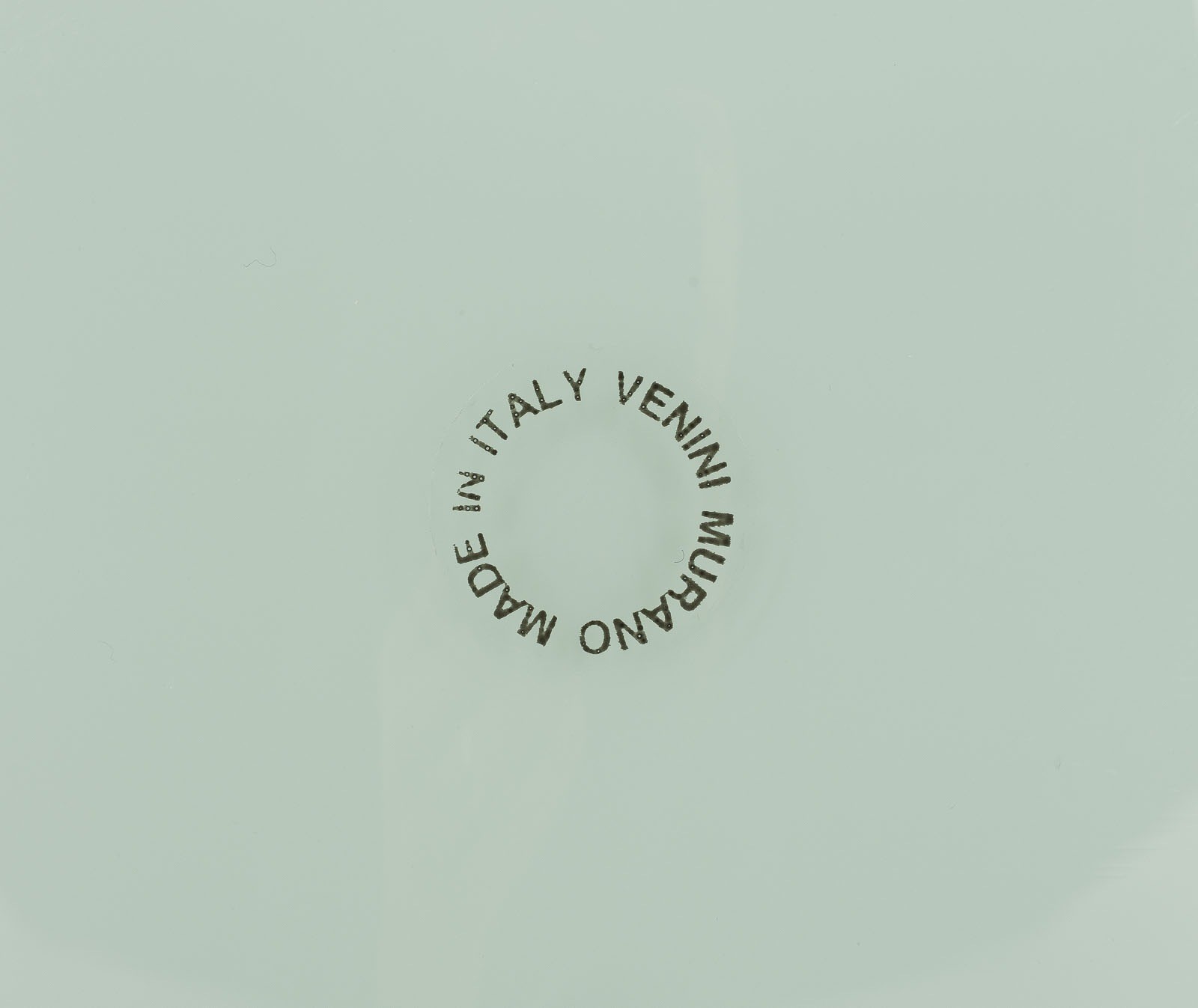 Überfangglas farblos, weiß, zart grün. H. 29,5 cm, D. 13,5 cm. Unterseitig bez. 'venini 2000' (geritzt). Standring leicht best..