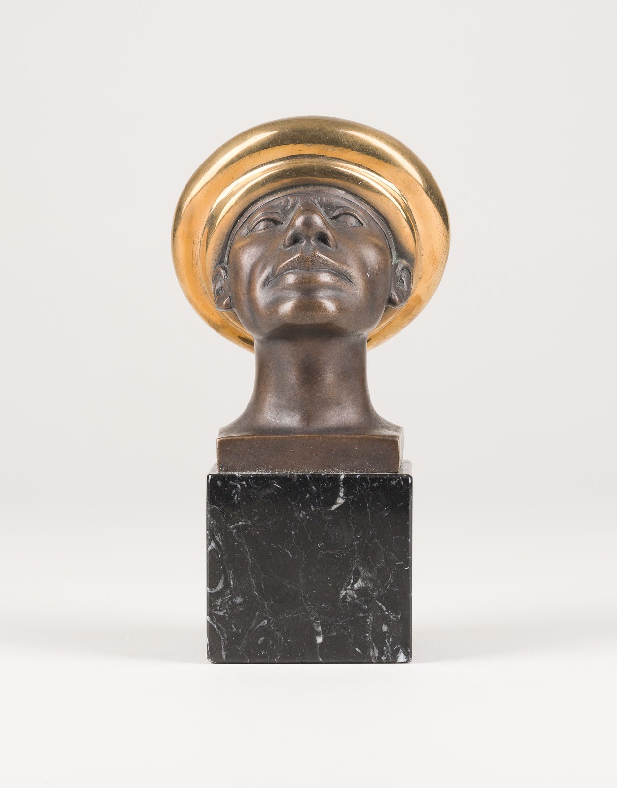 Bronze, braun patiniert, teils poliert, auf schwarzem Marmorsockel. H. 12 cm, Ges.-H. 19 cm, Ges.-Gew. 1,65 kg. Verso sign. sowie mit Ex.-Nr. '434/1250' und mit Stempel Ed. 'venturi arte'. Part. minimalste Oberflächenkratzer.