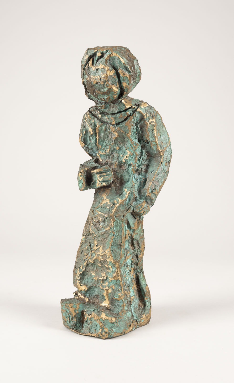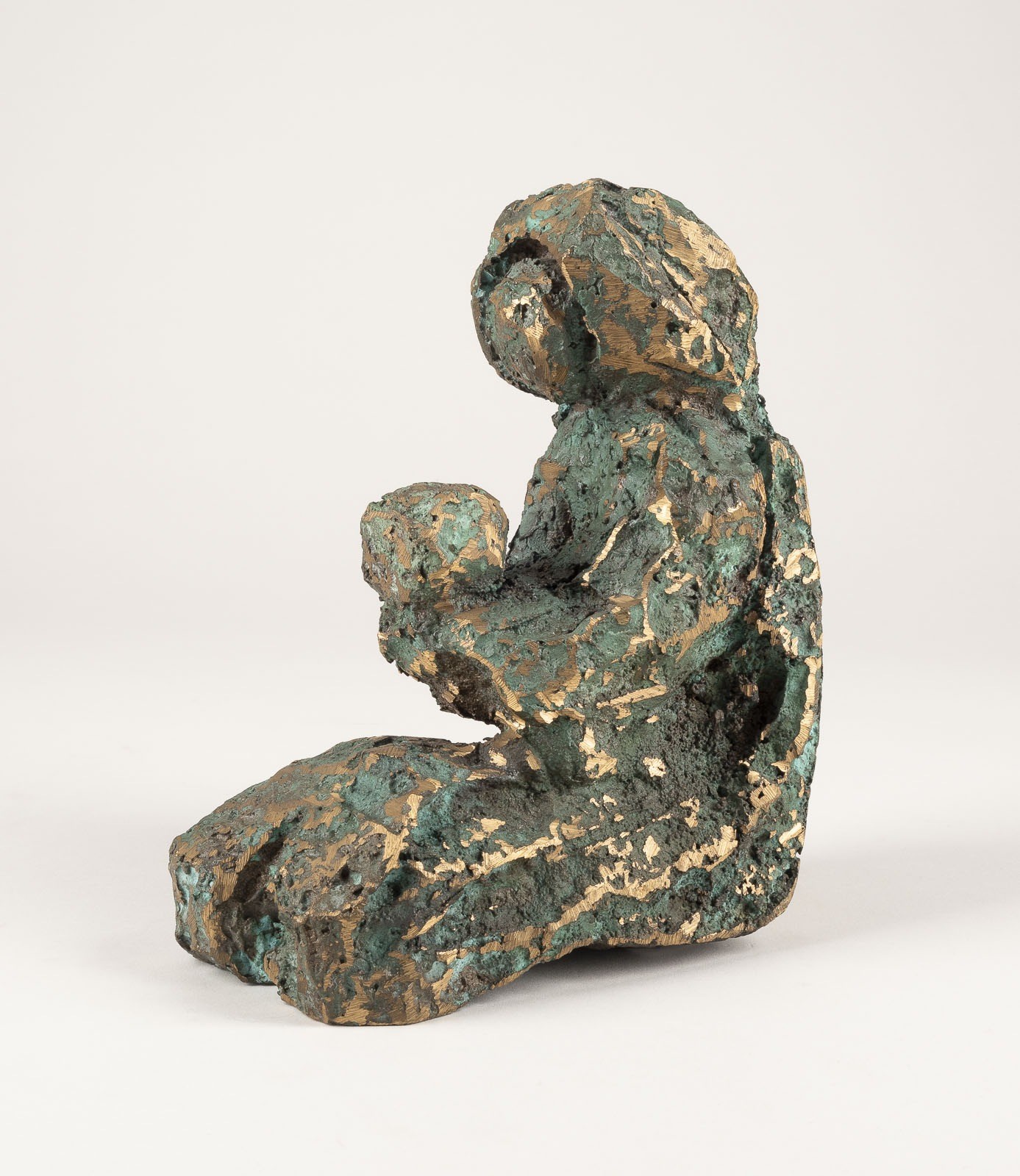 2 Bronze-Figuren. Mutter mit Kind: H. 21 cm, Gew. 9,9 kg, Vater: H.. Jew. unterm Stand monogram. und bez. 'Telgmann Kamen'. Jew. mit Oxidationsspuren.