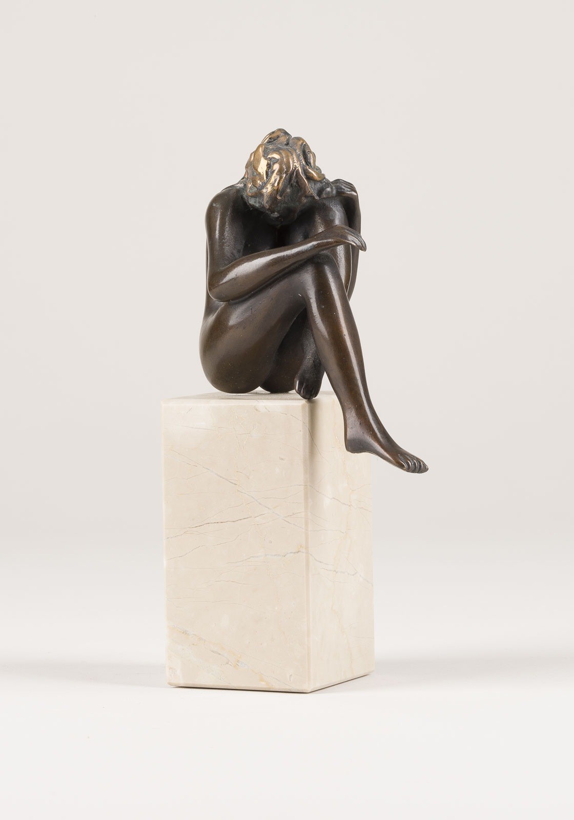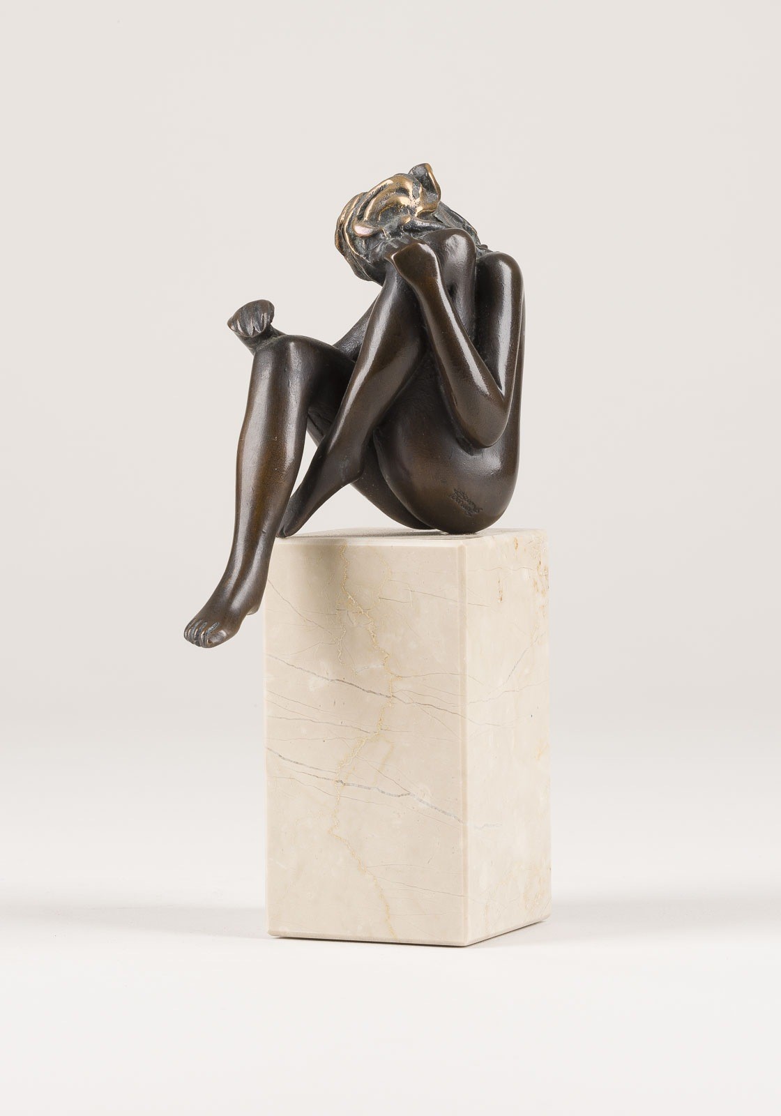 Bronze, dunkelbraun patiniert, part. poliert, auf Marmorsockel. Ges.-H. 18 cm, Ges.-G. 1,45 kg. Seitlich mit Stempelsignatur, unter dem Fuß mit Ex.-Nr. '1117/1250'.