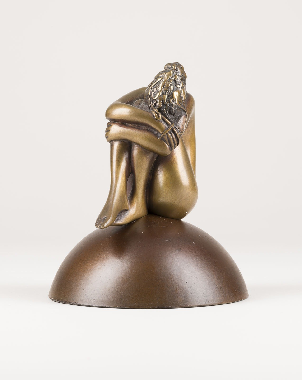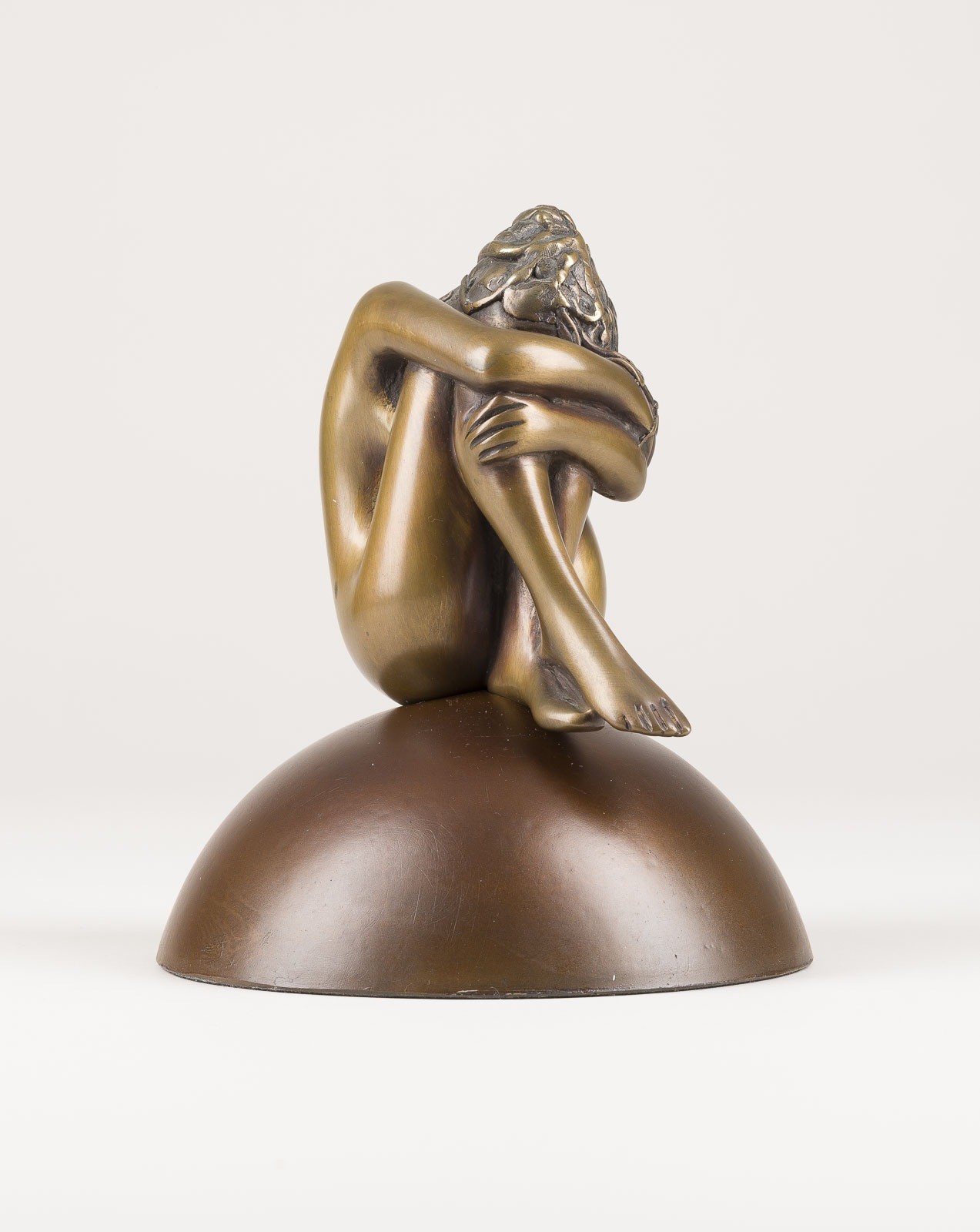 Zweiteilige Bronze, goldbraun u. dunkelbraun patiniert, Ed. ARA Kunst. H. 18 cm, Sockel-D. 15 cm, Ges.-G. 3,5 kg. Auf der Fußsohle mit Signaturstempel, Gießereistempel sowie Ex.-Nr. '827/5000'. Part. leicht ber.