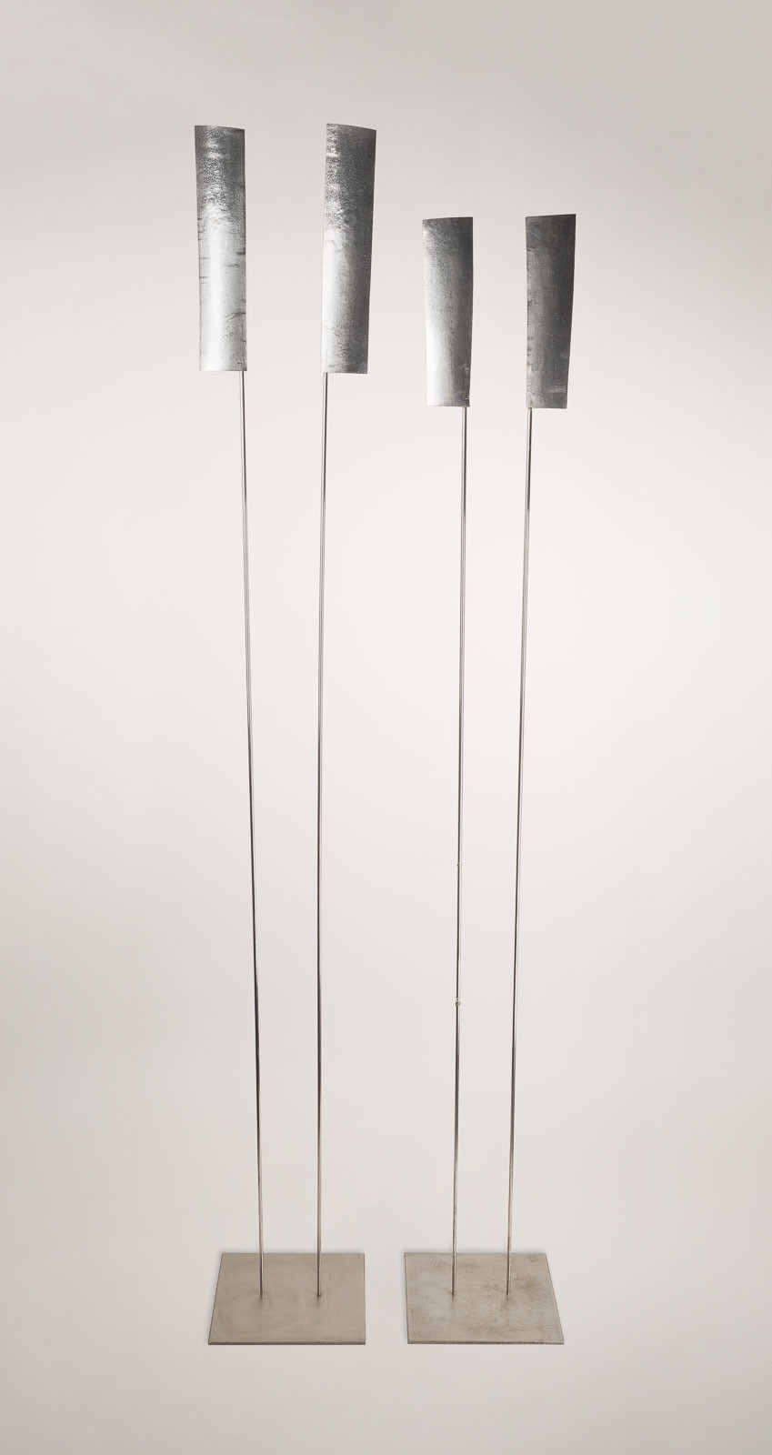 2 Edelstahlobjekte aus der Serie: Schilfblätter