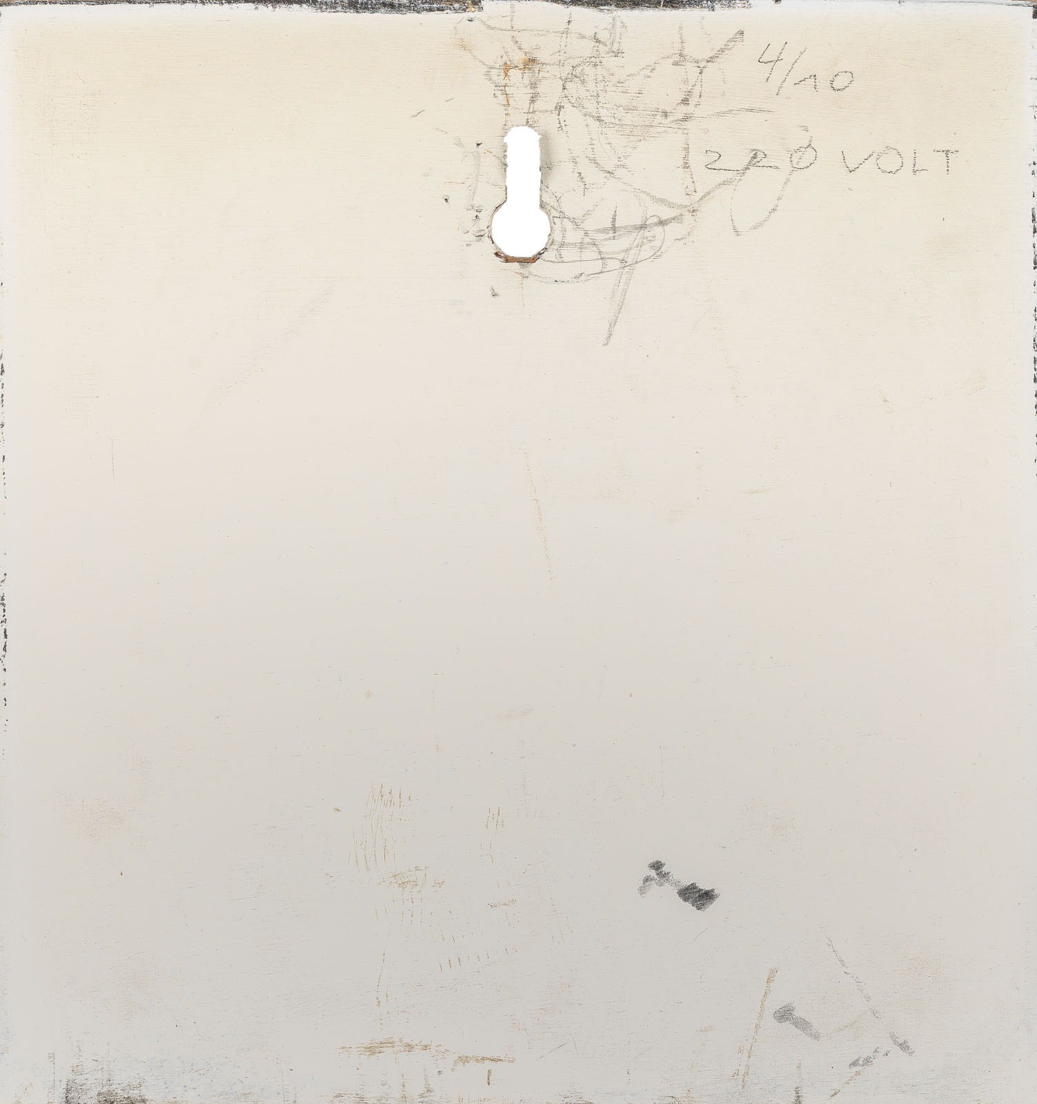 Edelstahl, Holz, weiß lackiert, mit integriertem Motor und Elektrokabel (ungeprüft). ca. 50 x 50 x 25 cm. Innen signiert, datiert und nummeriert, sowie außen nummeriert '4/10'. Leicht verschm., part. fleckig.