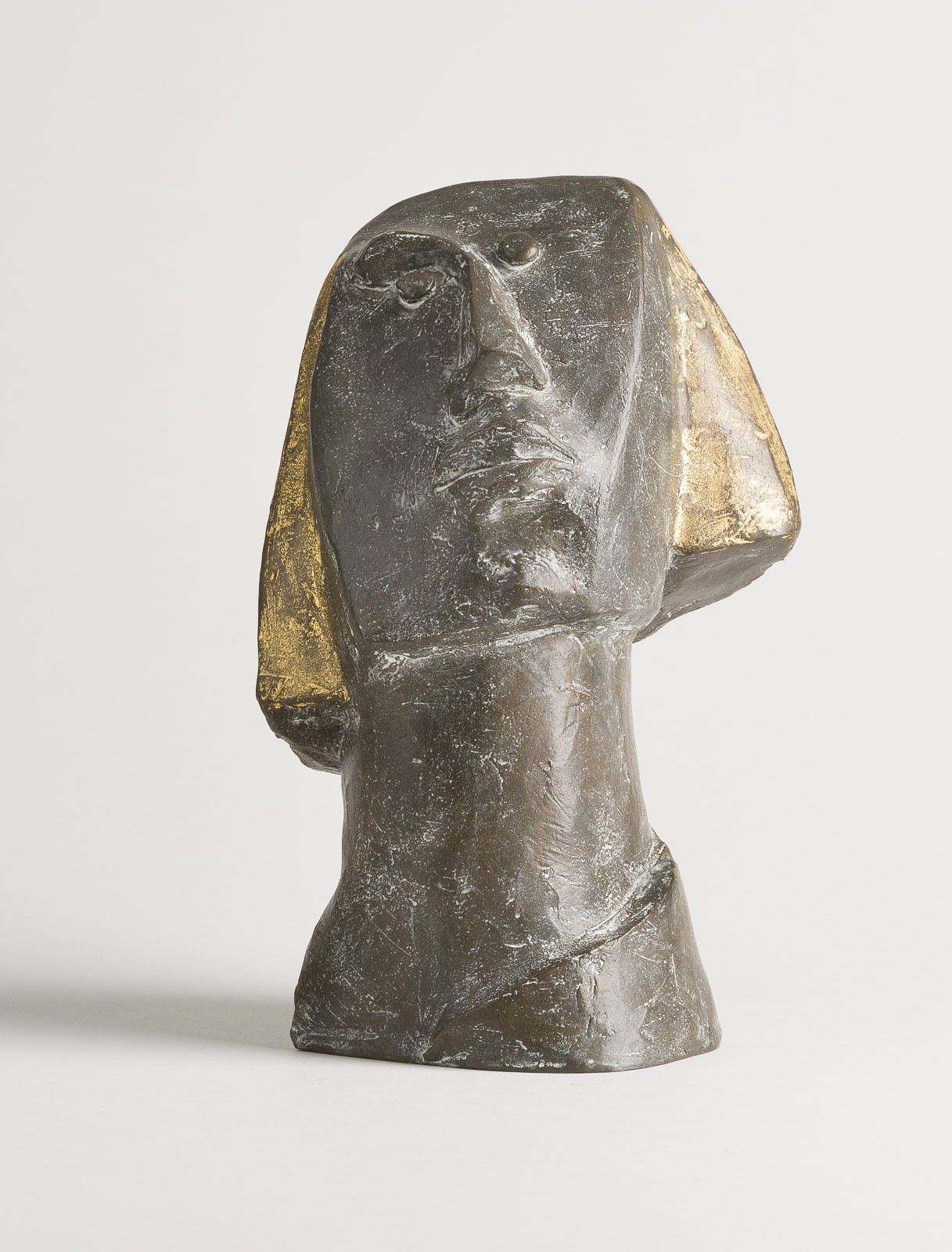 Bronze, dunkelbraun patiniert, teils vergoldet. 24,8 x 15 x 11 cm, 3,45 kg. Rückseitig mit Künstlermonorgamm. Laut vorherigem Besitzer ist dies der dritte Abguss einer neuner Auflage, welche 2002 zum