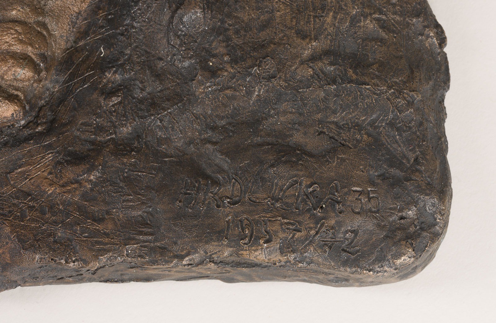 Bronze, goldbraun u. partiell schwarz patiniert, in Originalkiste. H. 28 cm, Gew. 12,6 kg. Vorne rechts sign., dat. sowie num. '35', unterseitig mit Gießereistempel 'venturi arte'. Part. verschmutzt, Kiste stark verschmutzt.