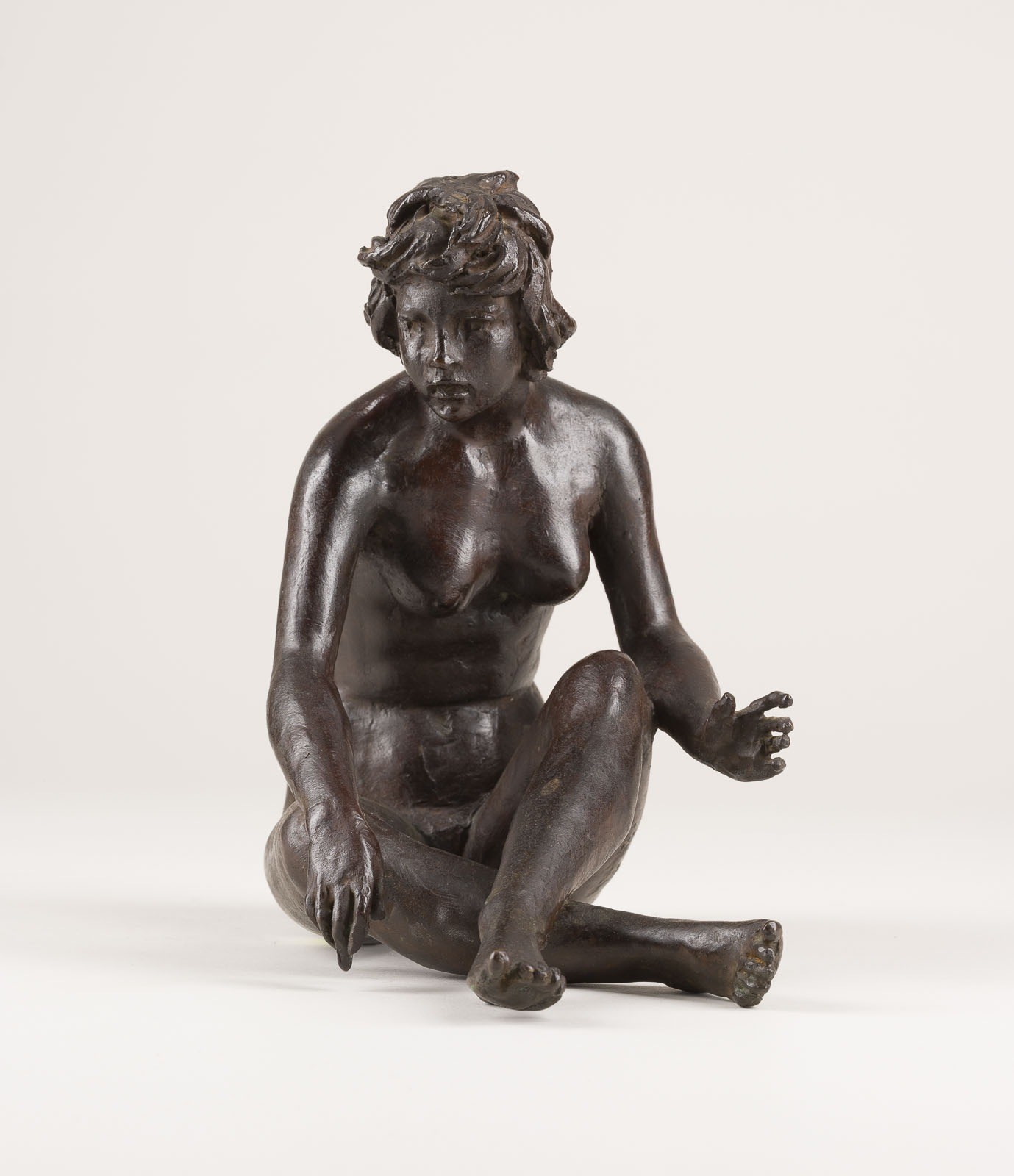 Bronze, dunkelbraun patiniert. H. 21 cm, Gew. 3,7 kg. Seitlich am Bein signiert und num. '3/50'. Part. mit Oxidationsspuren.