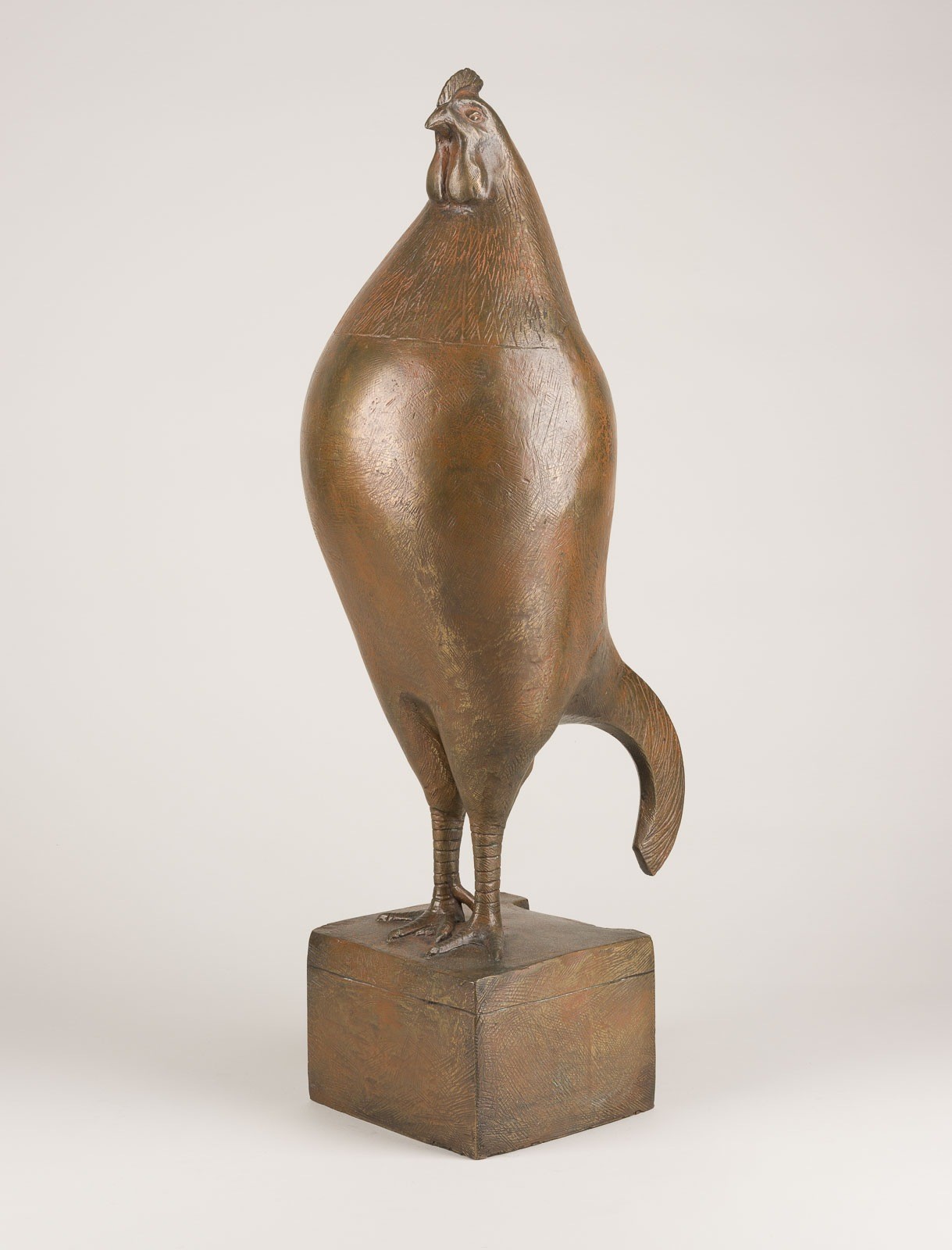 Bronze auf Sockel, braun u. rot patiniert, teils poliert. Ca. 67 x 24 x 28 cm, 13,4 kg. Part. min. ber.