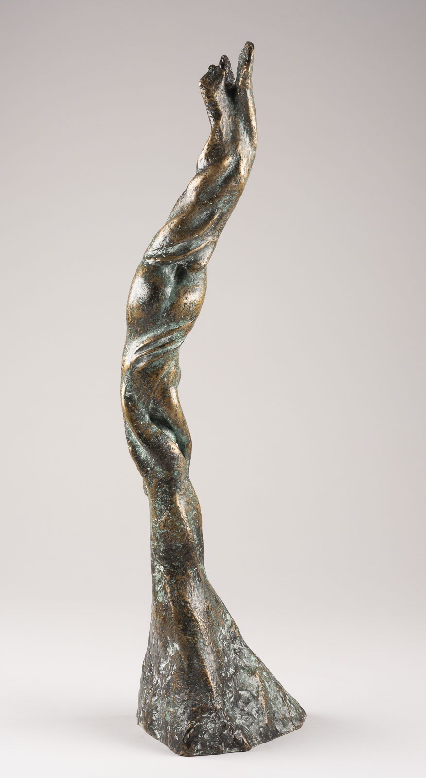 Bronze, dunkelbraun und grün patiniert. H. 67,5 cm, Gew. 8,9 kg. Seitlich wohl bez. Mit Oxidationsspuren, part. besch.