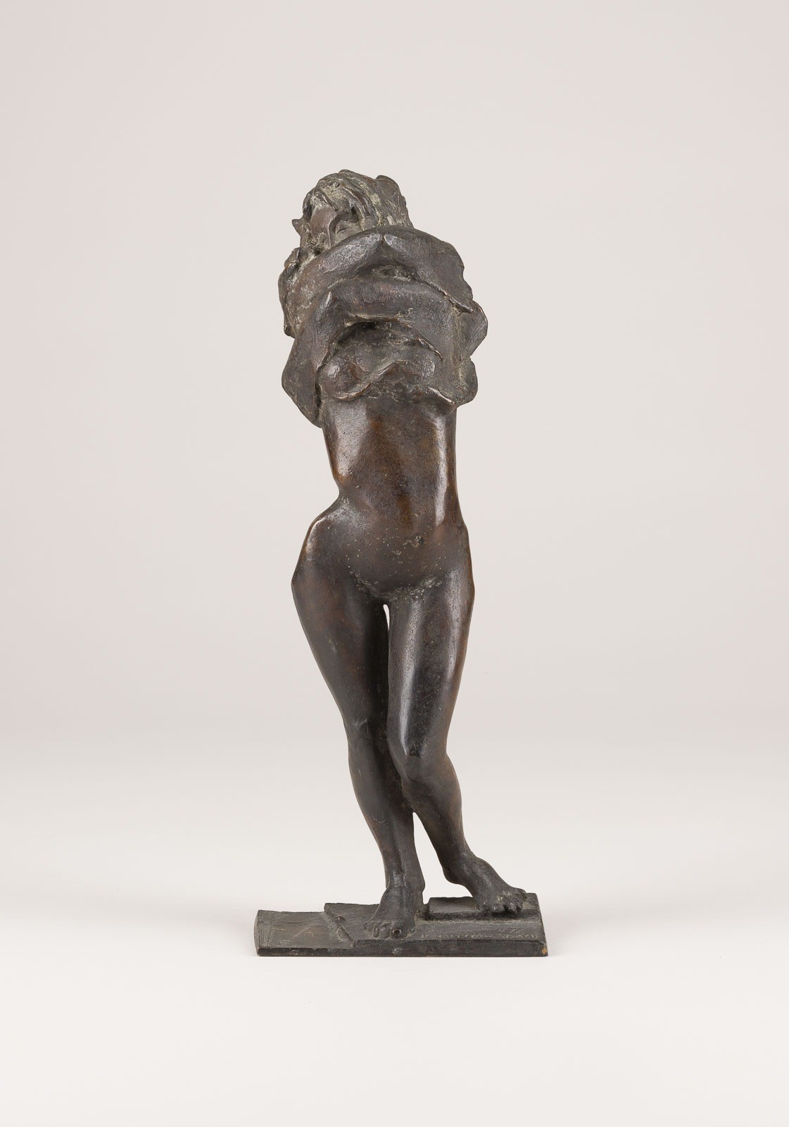 Bronze dunklelbraun patiniert. 35 x 13,3 x 8 cm. 3,45 kg. Auf der Plinthe sign. u. dat. 'v 77' u. 'K HALT TROSSBACH'.