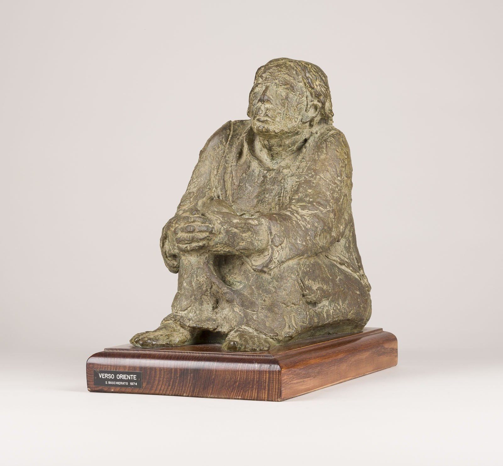 Bronze, braun patiniert, auf Holzsockel. Bronze-H. 28 cm, Ges.-H. 32 cm, Ges.-Gew. 9,1 kg. Seitlich signiert sowie mit Plakette auf Sockel bez. und dat. Mit Oxidationsspuren.