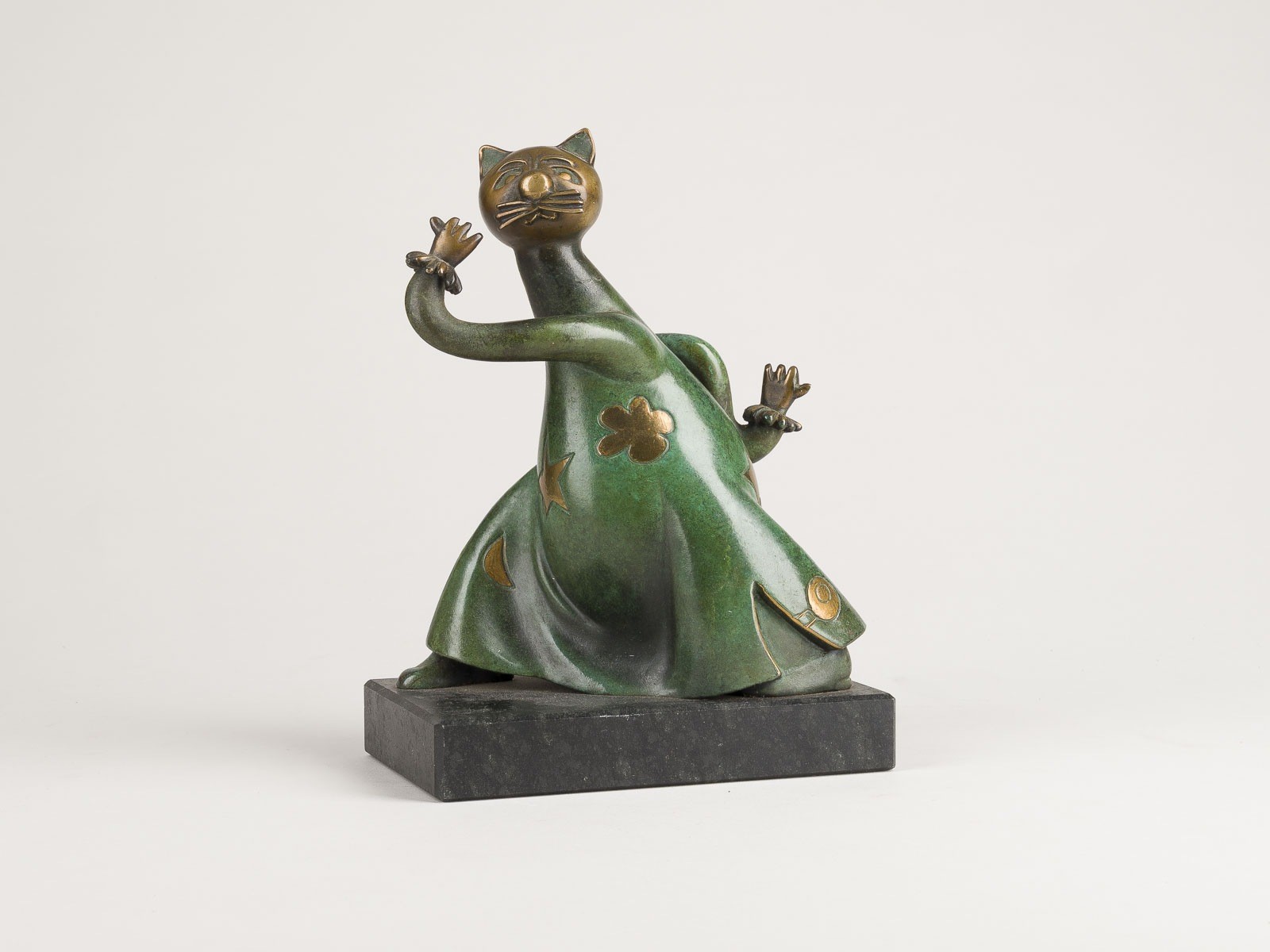 Bronze, braun/grün patiniert, teils poliert, auf Steinsockel. H. 19 cm, Ges.-H. 22 cm. Ges.-G. 3,25 kg. Rückseitig sign. 'O. Alt', mit Gießereistempel sowie mit Ex.-Nr. '27/249'. Part. min. ber.