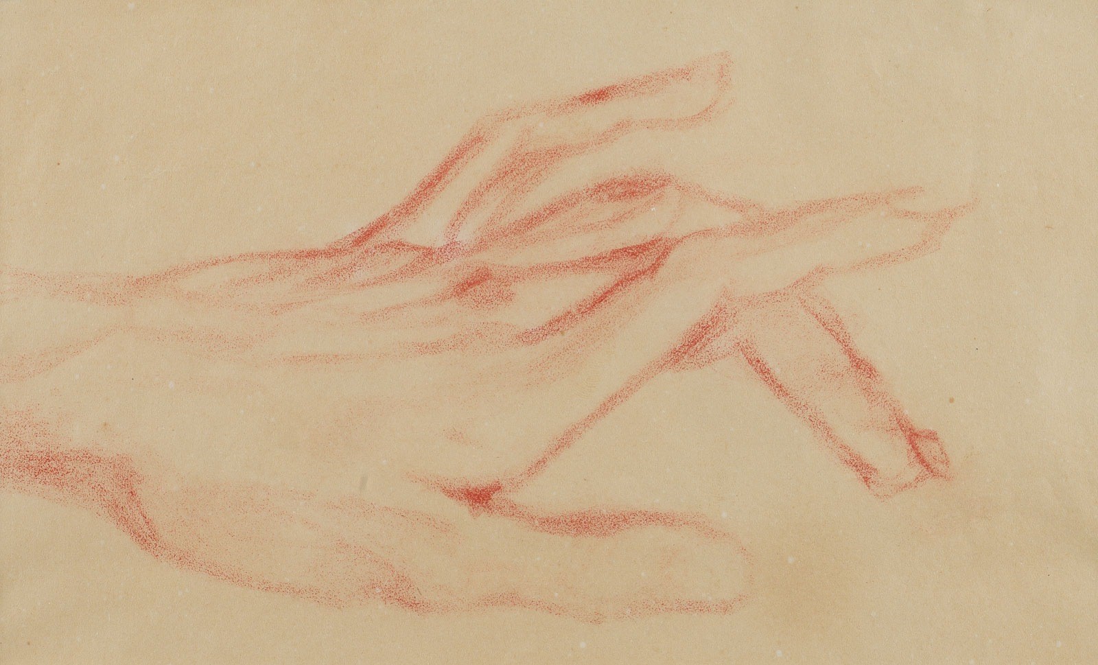 Roter Buntstift auf Papier. R. 25 x 35 cm, BM ca. 22 x 27,8 cm. Seitlich auf dem Papier bez. 'Heinz Hoerle Köln 1915'. Rückseitig mit Bleistift bez und mit Kleberückständen. Im Passepartoutausschnitt gebräunt, part. mit kleinen hellen Flecken, Blatt Rahmenbedingt geknickt, an den Rändern part. besch. Im Passepartout und hinter Glas gerahmt.