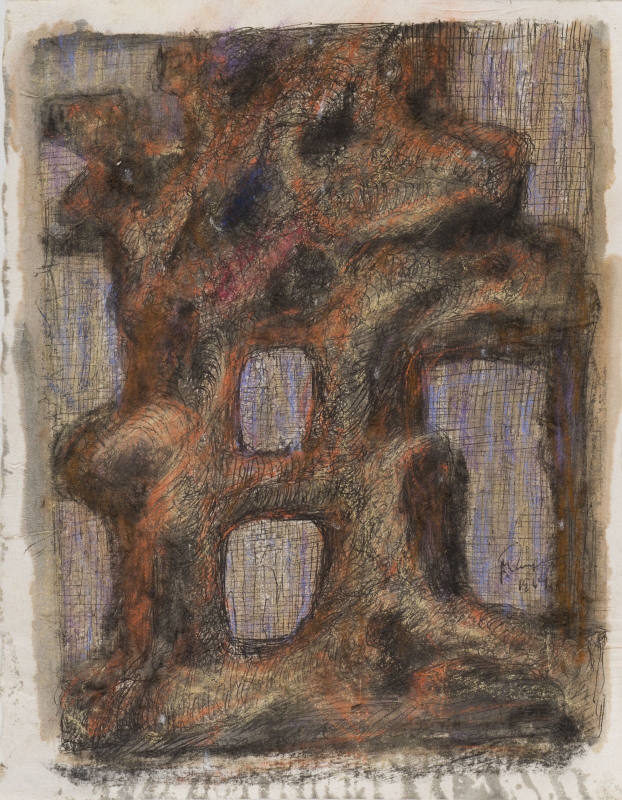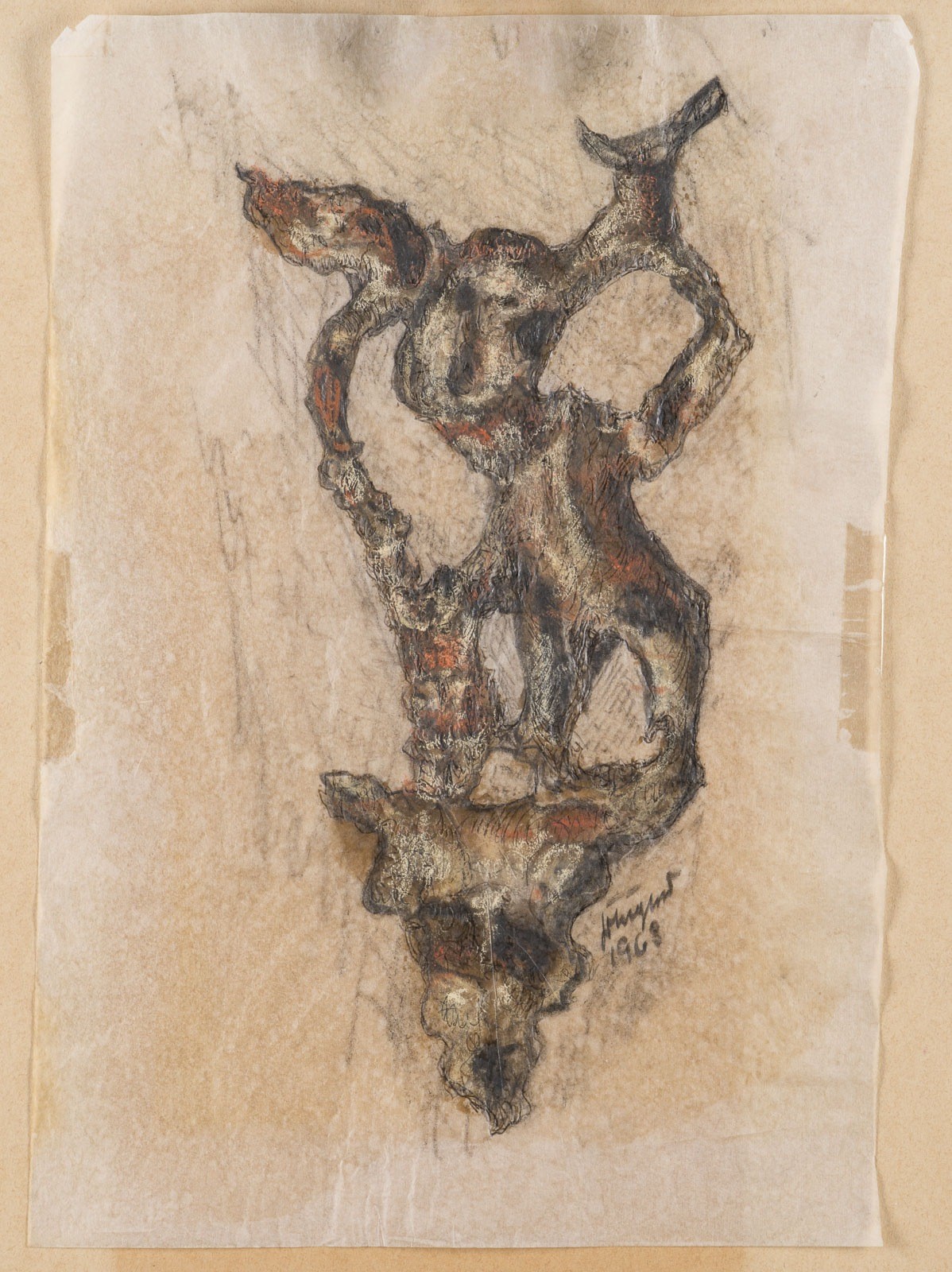 Mischtechnik auf (semi-transparentem) Papier. Versch. Maße, 23,7 x 16,5 - 35 x 24,2 cm. Jew. sign. u. dat. Papier teils besch., mit Knickspuren sowie teils mit Resten von Klebeband. 4x ungerahmt, eine Arbeit im Passepartout und hinter Glas gerahmt (ungeöffnet).