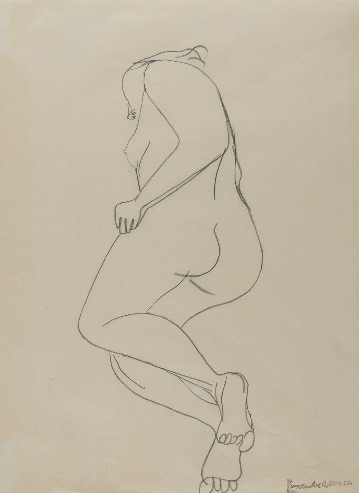 Bleistift auf Papier. R 53,5 x 47,5 cm, BM 37,5 x 27,5 cm. Unten rechts mit Stempelsignatur. An den Rändern gebräunt, montierungsbedingt mit hellen Flecken in den Ecken, min. Griffspuren. Im Passepartout und hinter Glas gerahmt (ungeöffnet).