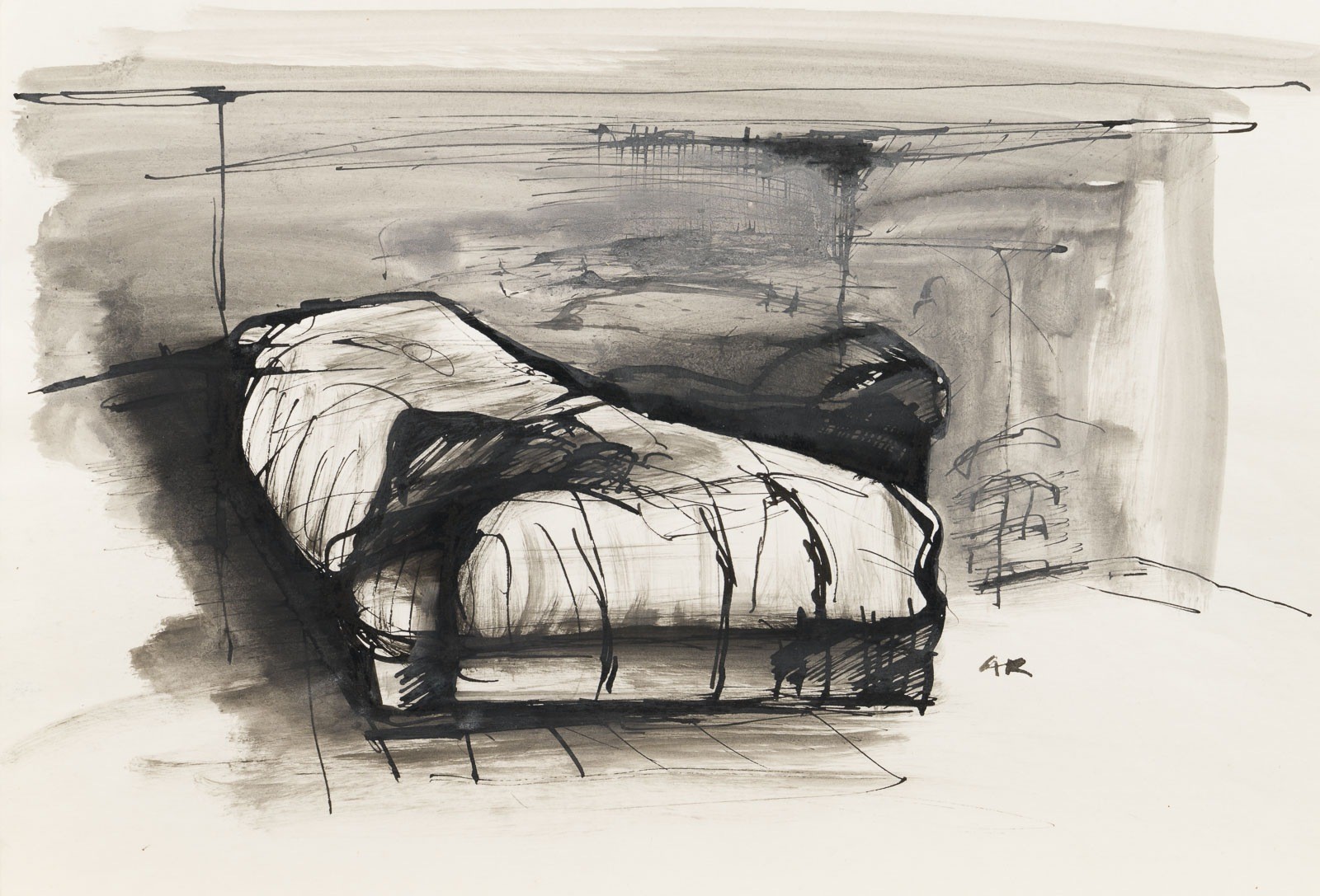 Mischtechnik auf Papier. BM 33 x 45,1 cm. Unten rechts monogrammiert 'AR'. Verso: unten rechts mit Bleistift sign. u. dat. 'A. Riedl 1976' sowie mit Bleistift von fremder Hand bez. Min. Griffspuren, die Ecken mit Knickspuren.