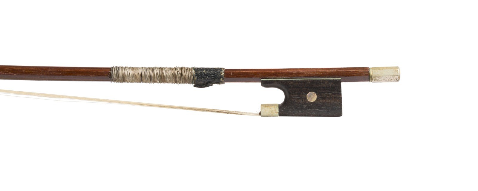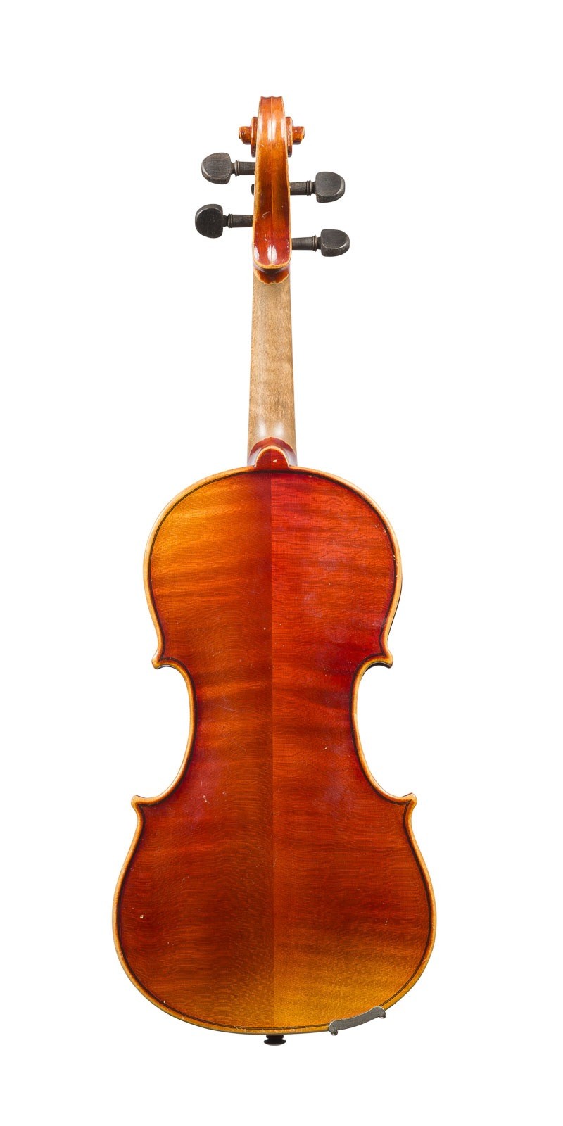 Zweiteilige Fichtenholzdecke und Ahornboden, rot-brauner Lack, mit Koffer. 3/4 Geige, L. 55,5 cm, Korpusl. 33,5 cm. 3/4 Geigenbogen, Deutsch, 20. Jh., runde Stange, Einfach-Auge, Wicklung, Daumenleder,