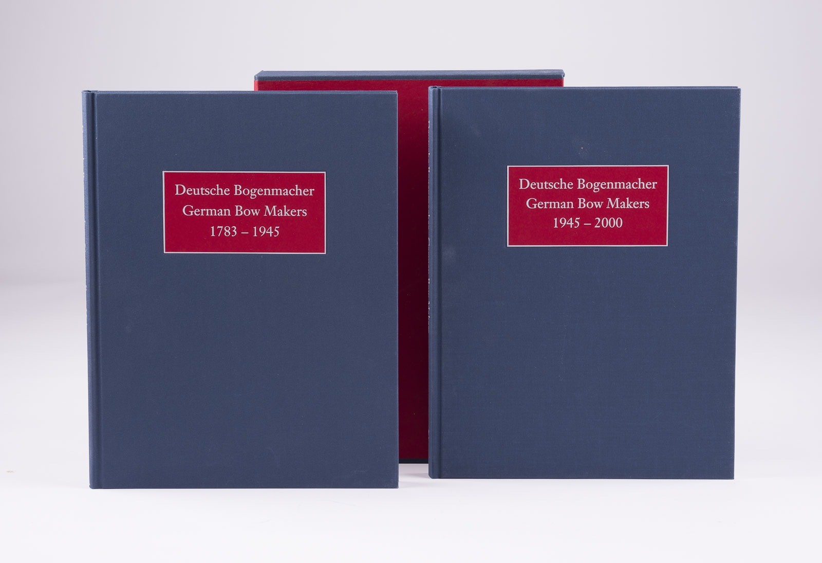 Doppelband mit Schutzhülle. H. 31,5, B. 25, T. 5,5 cm. Klaus Grünke, C. Hans-Karl Schmidt & Wolfgang Zunterer. Umfassendes Werk über den deutschen Bogenbau von seinen Anfängen bis heute. Min. ber.