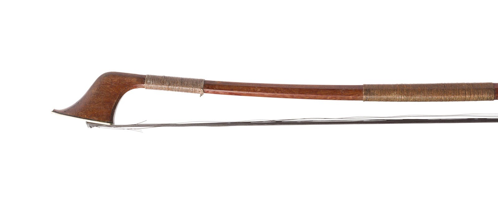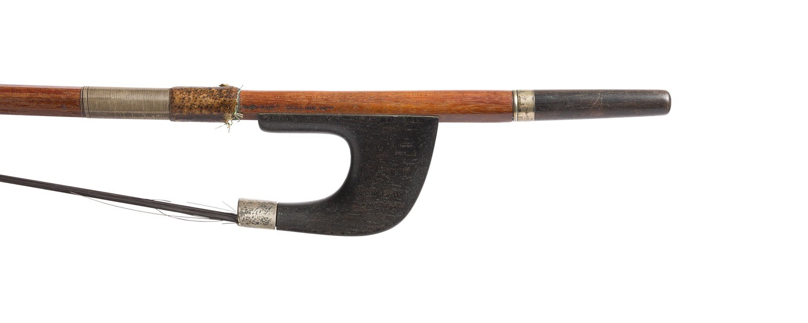 Oktogonale Stange, Neusilbermontierung und -wicklung, Daumenleder, Elfenbeinkopfplatte. L. 77,1 cm, Gew. ca. 130g.. Kontrabass Bogen gemarkt 'Kurt Dölling' und geschwungene Kreuzblume. Part. best. und min. rest.