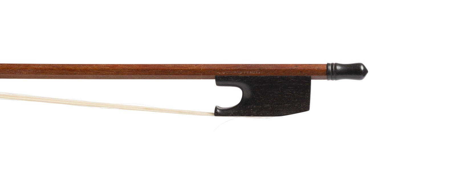2x runde und oktogonale Stange, Schwanenkopf. L. 72/70/62 cm, Gew. ca. 50/52/44 cm. Zwei Bögen gemarkt 'Otto Dürrschmidt' und Emblem im Frosch gestempelt und 'K. Gerhard Penzel'. Barock-Violinbogen und kurzer Barockbogen (ggf. Frühbarock-Modell oder Diskant-Gambe). Part. best. und ber.