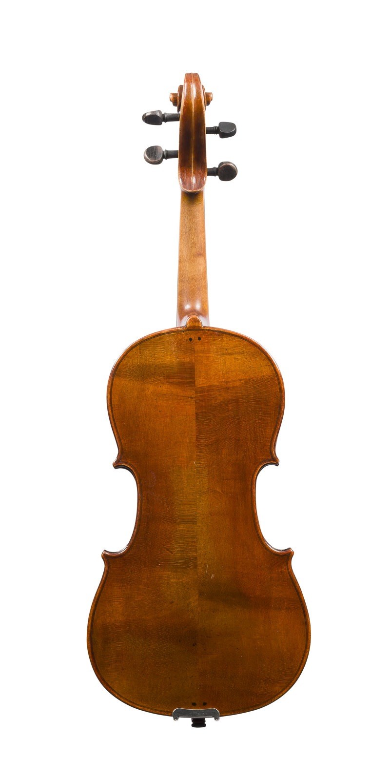 Zweiteilige Fichtenholzdecke und Ahornboden, brauner Lack. 4/4 Geige, L. 58,9 cm, Korpusl. 35,5 cm. Geigenzettel: Eugen Gärtner Atelier für Kunstgeigenbau Hoflieferant fecit Stuttgart. Min. best., rest.