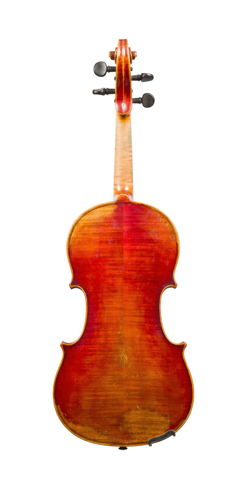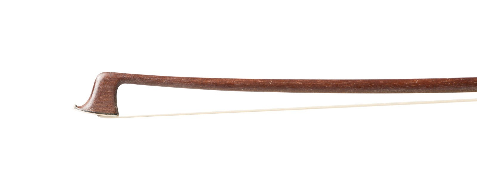 Zweiteilige Fichtenholzdecke und Ahornboden, braun-rötlicher Lack, mit Koffer. 4/4 Geige, L. 59,3 cm, Korpusl. 36 cm. 4/4 Geigenbogen, Deutsch, Anfang 20. Jh., runde Stange, Einfach Auge, Daumenleder,