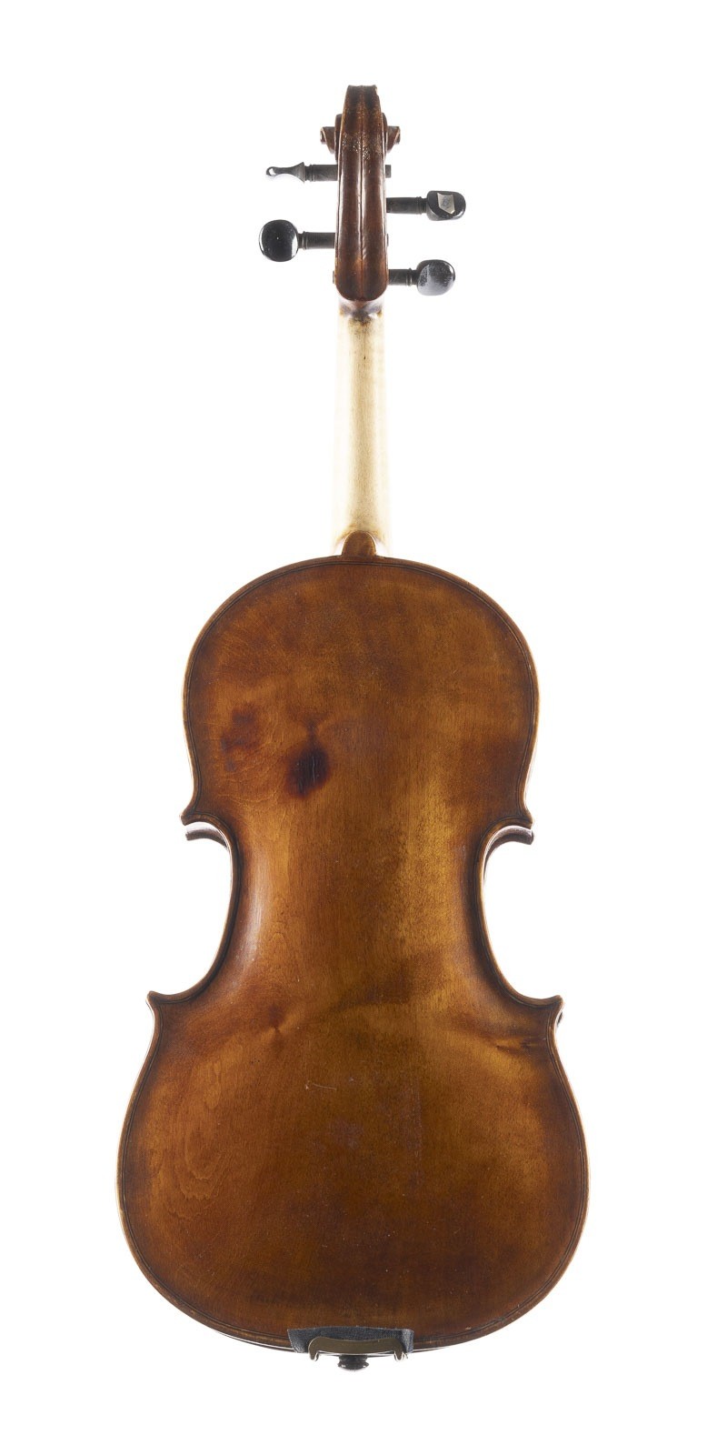 Zweiteilige Fichtenholzdecke und einteiliger Ahornboden, dunkelbrauner Lack. 4/4 Geige, L. 60 cm, Korpusl. 36 cm. Geigenzettel: 'Gebr. v. Nürnberger', '1920'. Mit Koffer. Min. ber. und best..