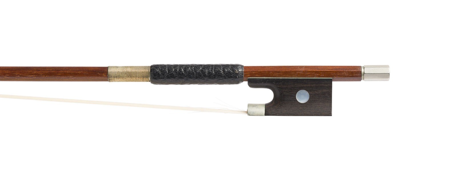 Zweiteilige Fichtenholzdecke und Ahornboden, orange-rötlicher Lack, mit Koffer. 4/4 Geige, L. 59 cm, Korpusl. 35,8 cm. Geigenbogen, 20. Jh., runde Stange, Einfach-Auge, Wicklung, Daumenleder,