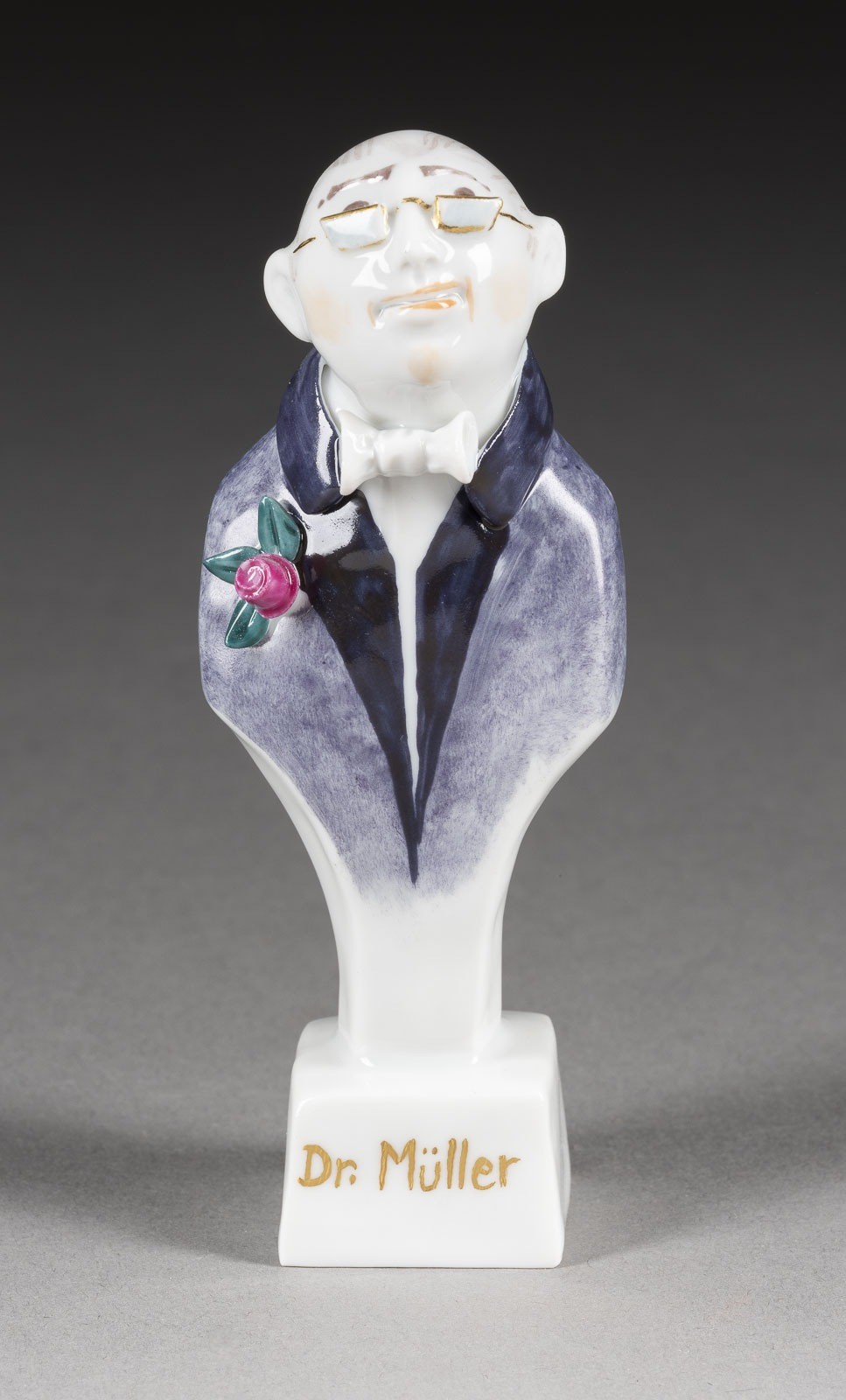 Porzellan, polychrome Malerei, dezente Goldstaffage. H. 9,8 cm. Unterglasurblaue Schwertermarke, Press- und Malernummer, Jahreszeichen, Modellnr. '83208'. 1. Wahl.